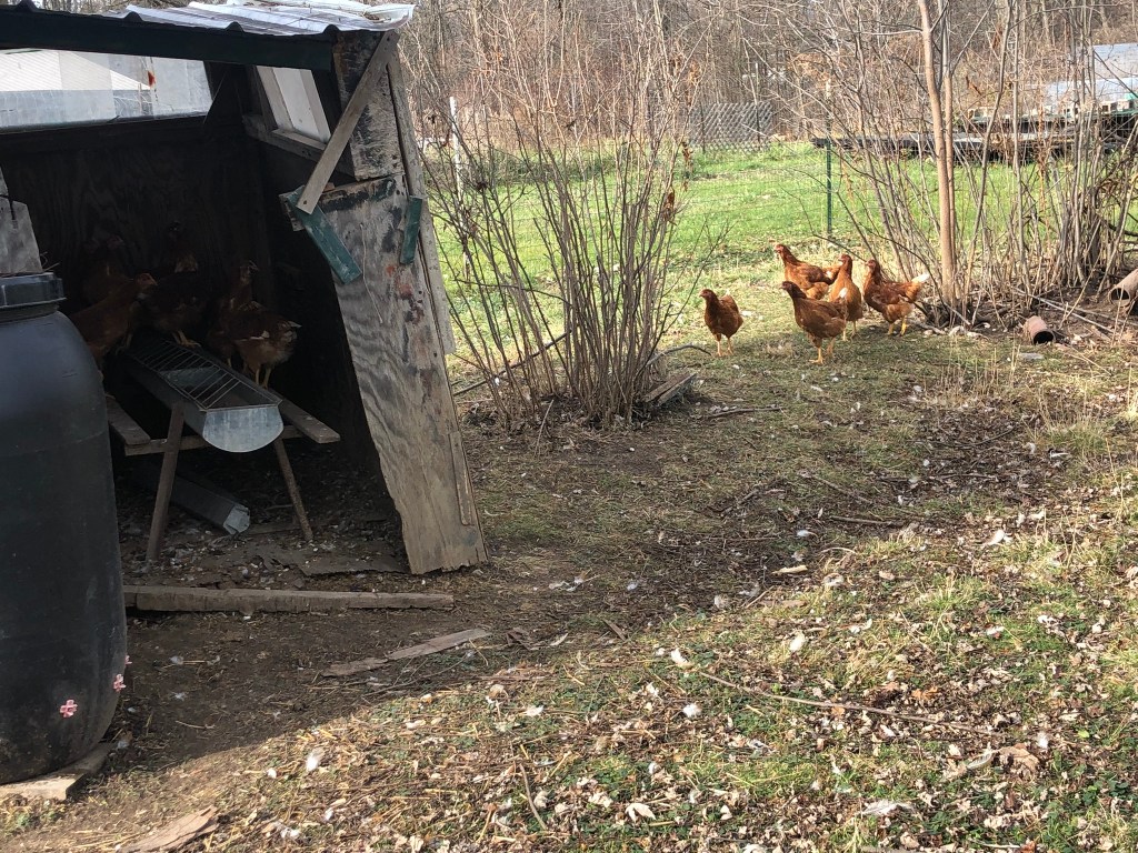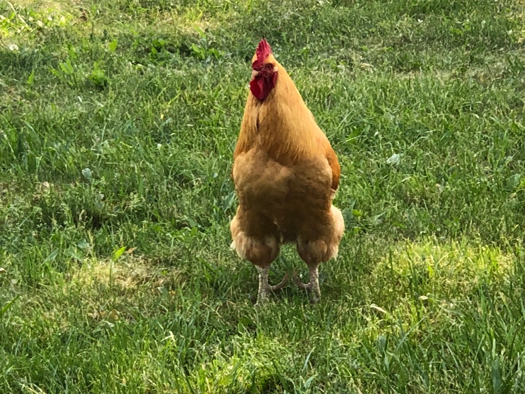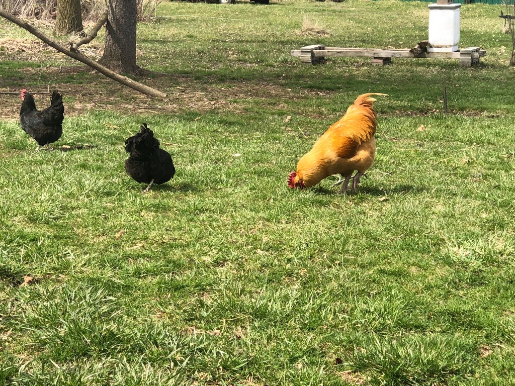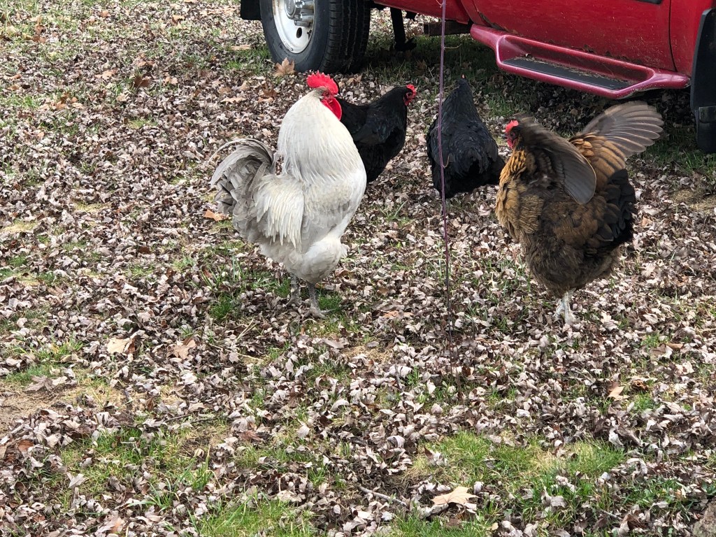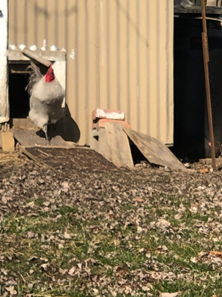 1/18 The “new” rooster takes care of the hens, but doesn’t look around and protect the flock. He runs from me rather than fight. Hopefully he gets better at protecting and alerting everyone from trouble when spring comes.