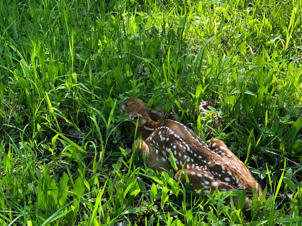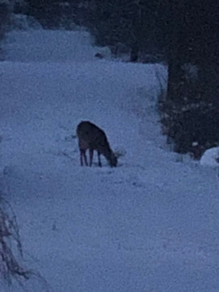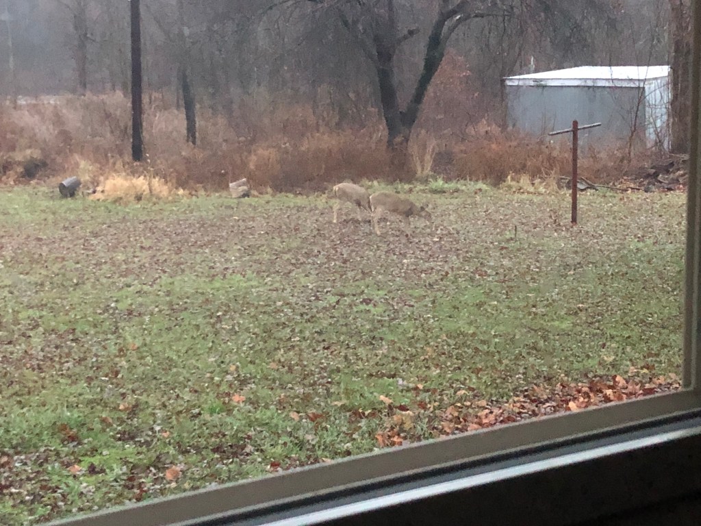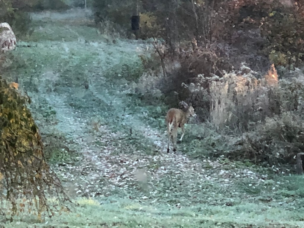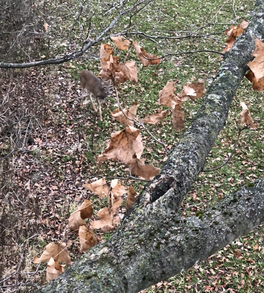 12/7 This deer has had a rough few weeks. First mom took off and has not come back and likely won’t if she has not by now. Its sibling was hit by a car a couple of weeks ago. It has not joined up with other deer yet and is sleeping right behind the barn lately.