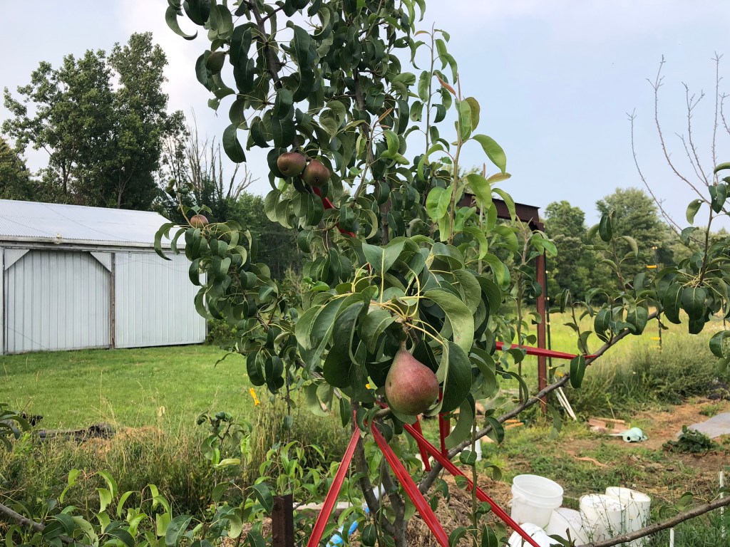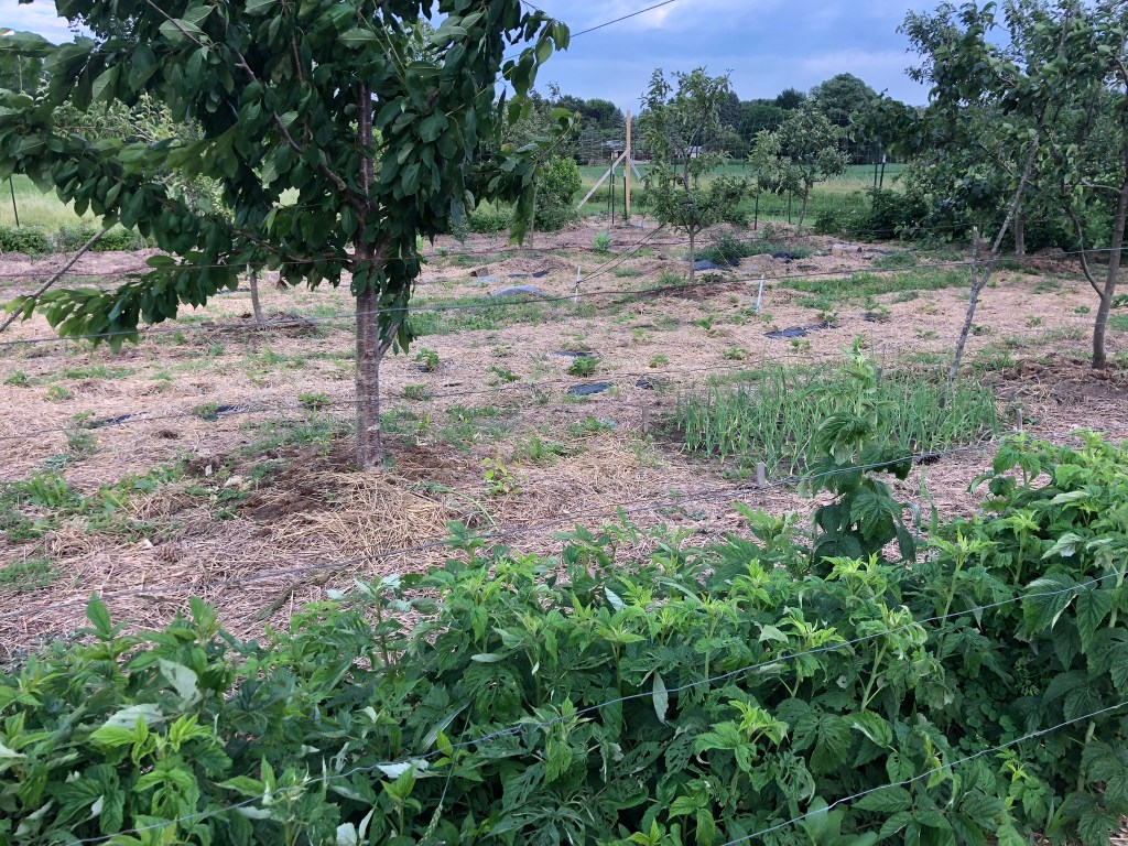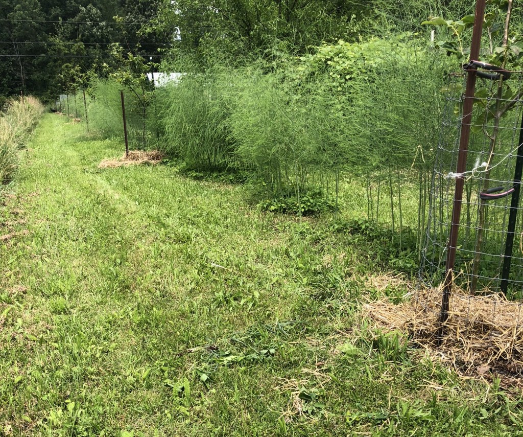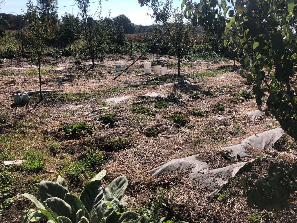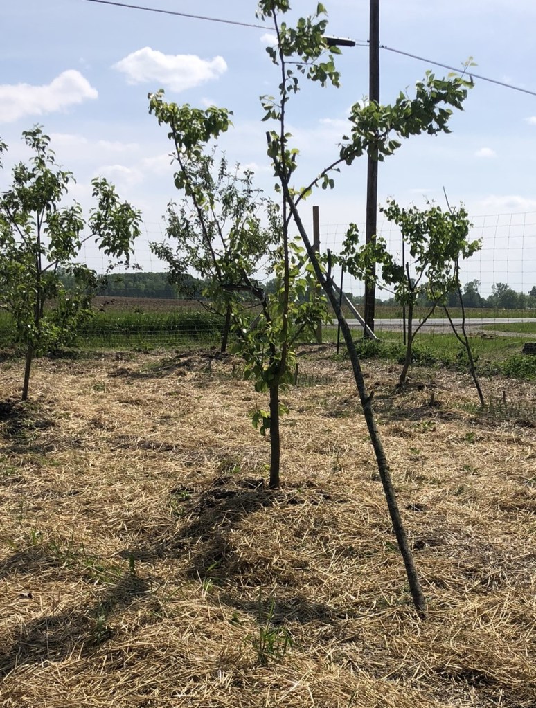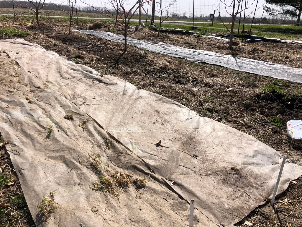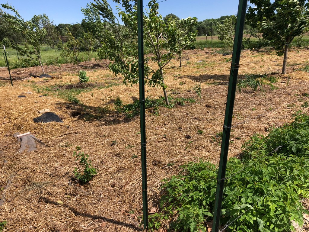 8/6 I purchased a very large amount of weed barrier at an auction so I put it all over the orchard and covered with straw. There should be very little weeding in the future and all the trees and plants will produce even more. Next spring I am going weed barrier the grapes. I hardly put a dent in the rolls of weed barrier.