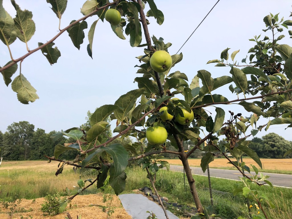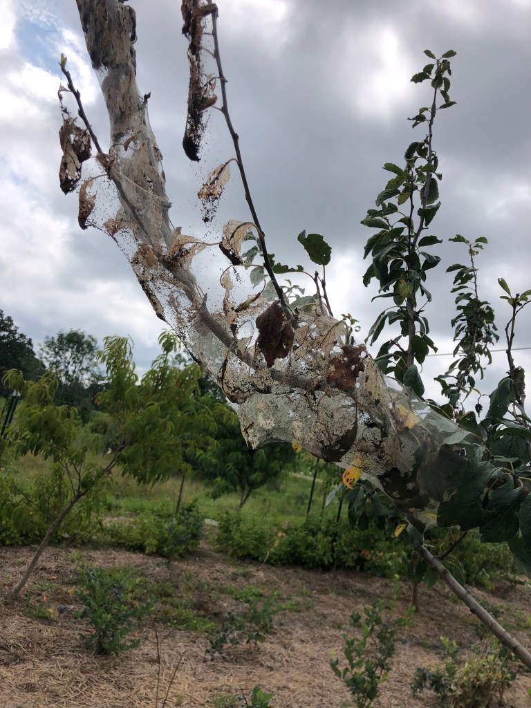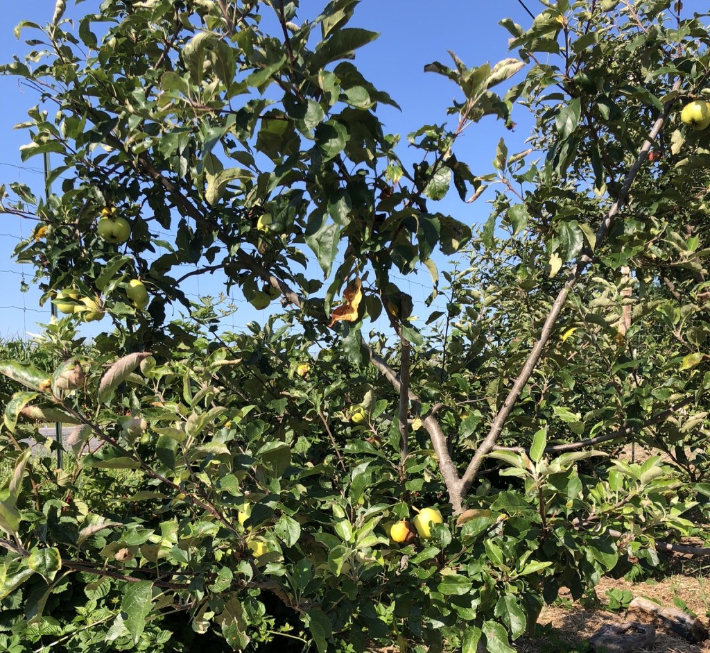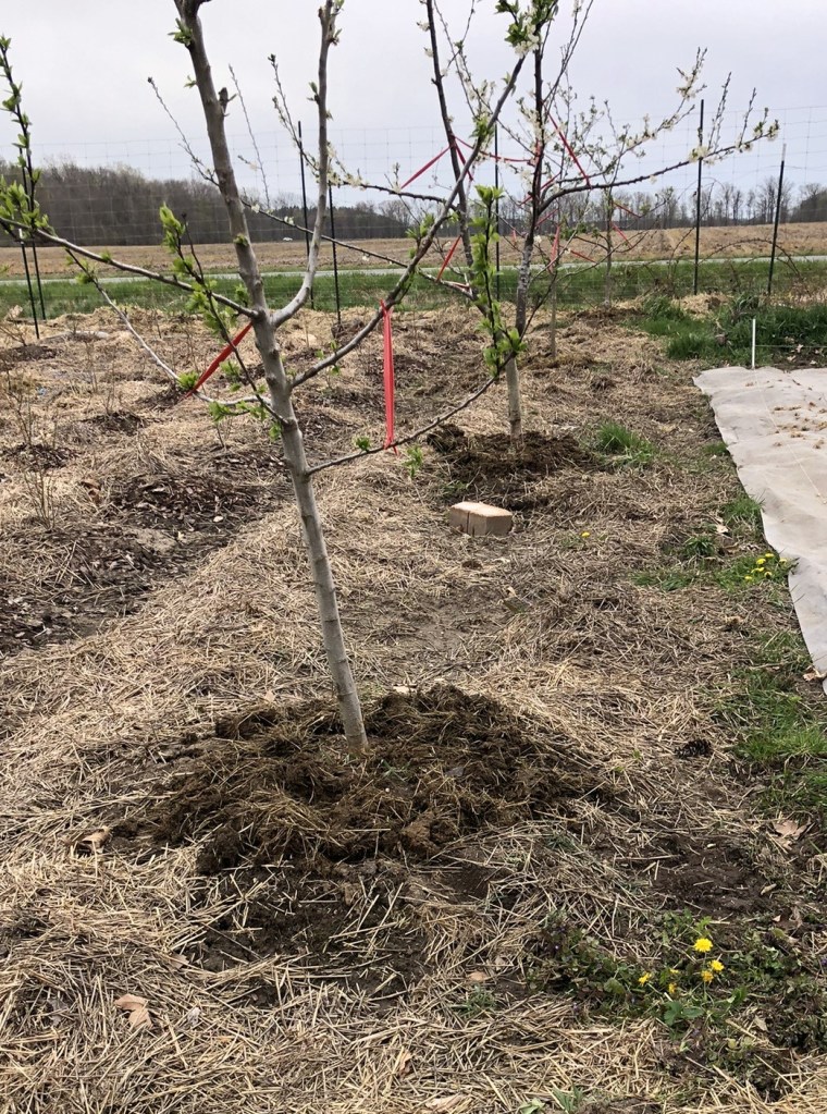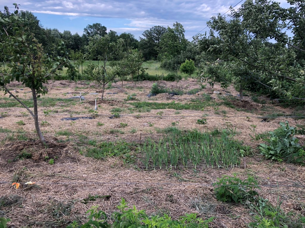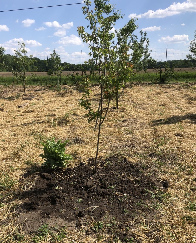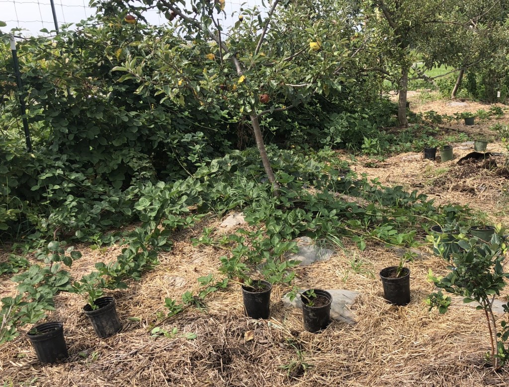8/6 I purchased a very large amount of weed barrier at an auction so I put it all over the orchard and covered with straw. There should be very little weeding in the future and all the trees and plants will produce even more. Next spring I am going weed barrier the grapes. I hardly put a dent in the rolls of weed barrier.