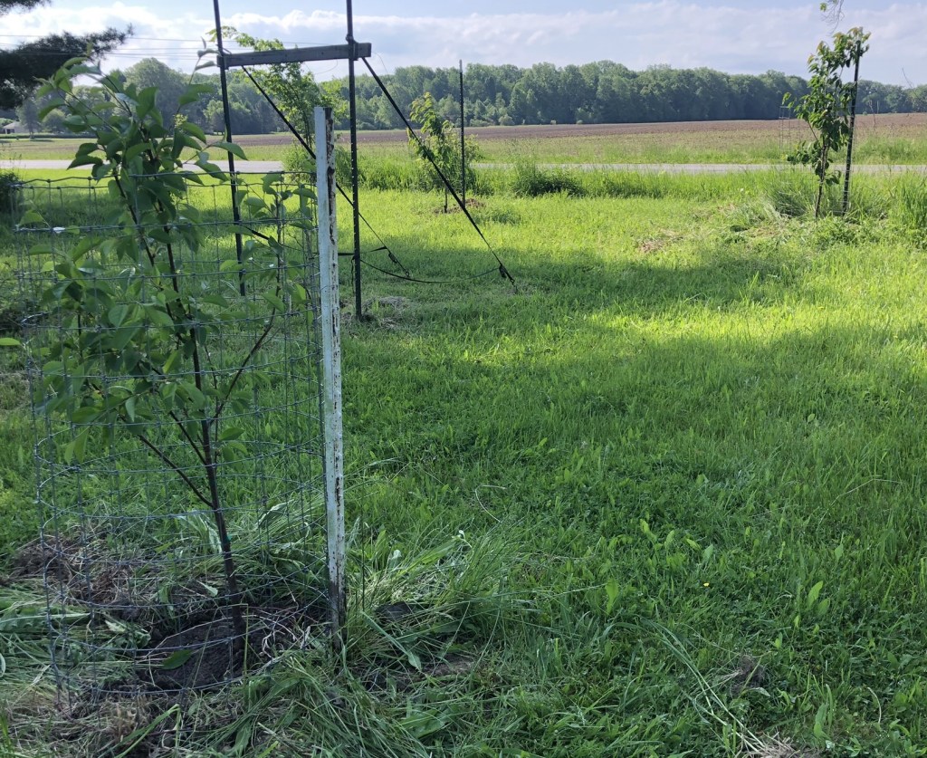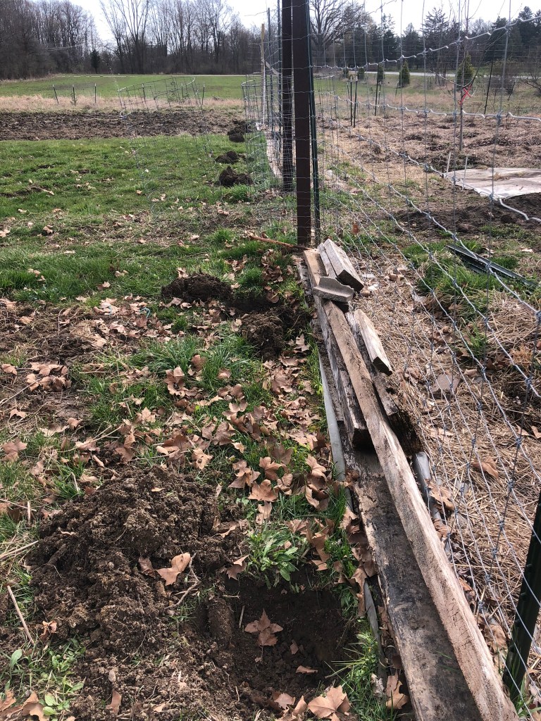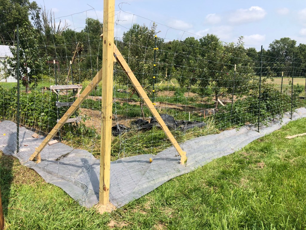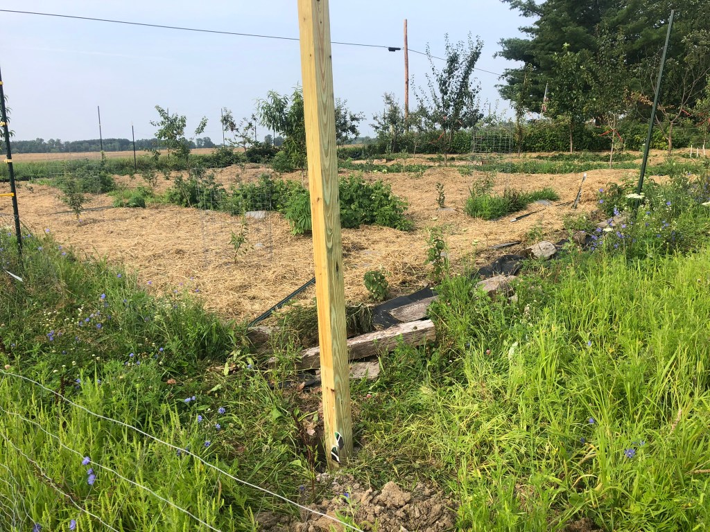 8/5 Set new corner posts for a new 8′ orchard fence.