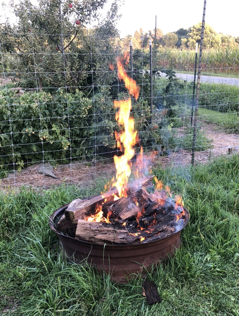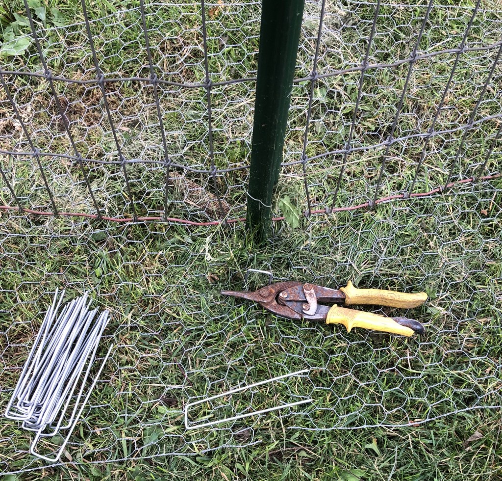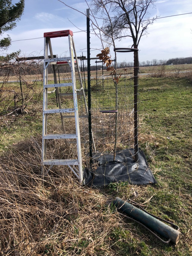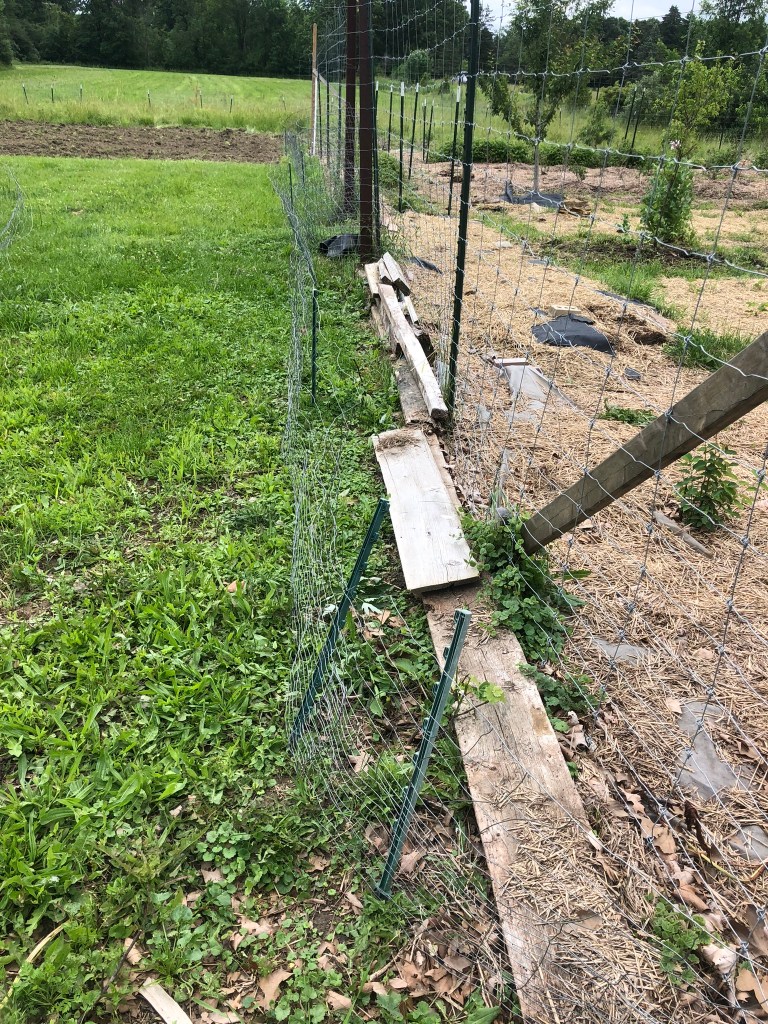 8/5 Set new corner posts for a new 8′ orchard fence.