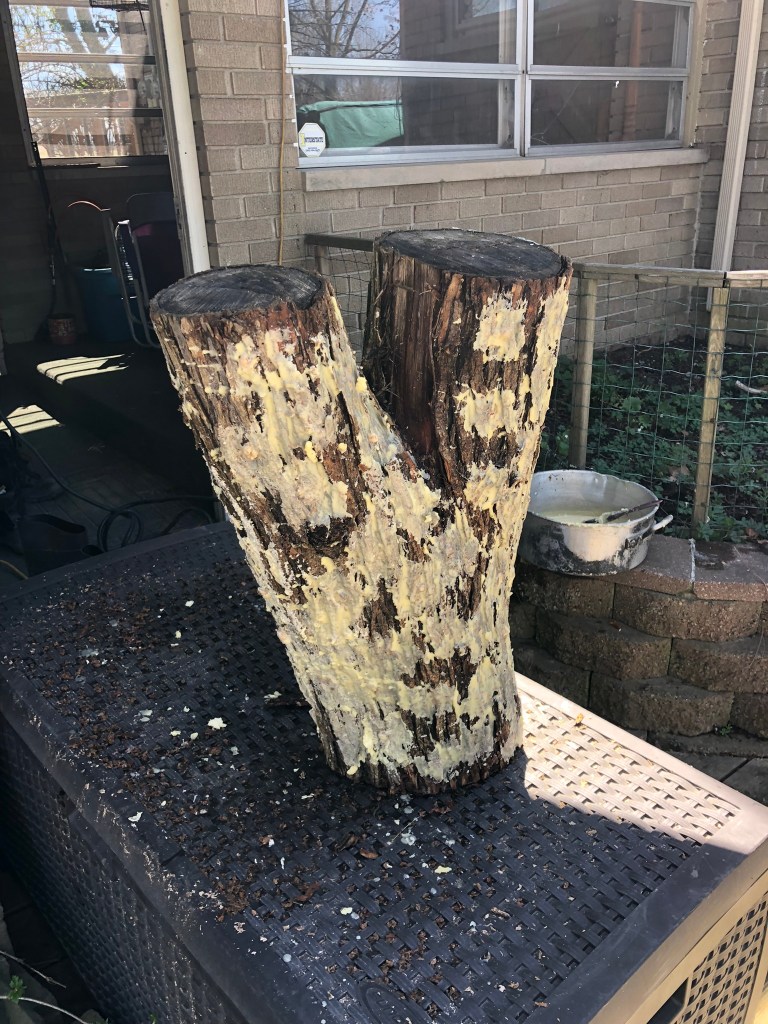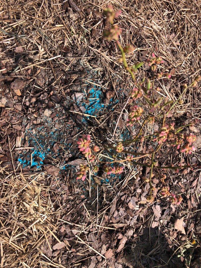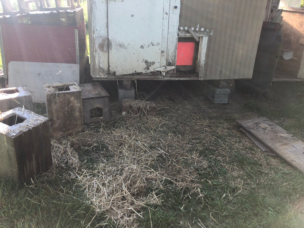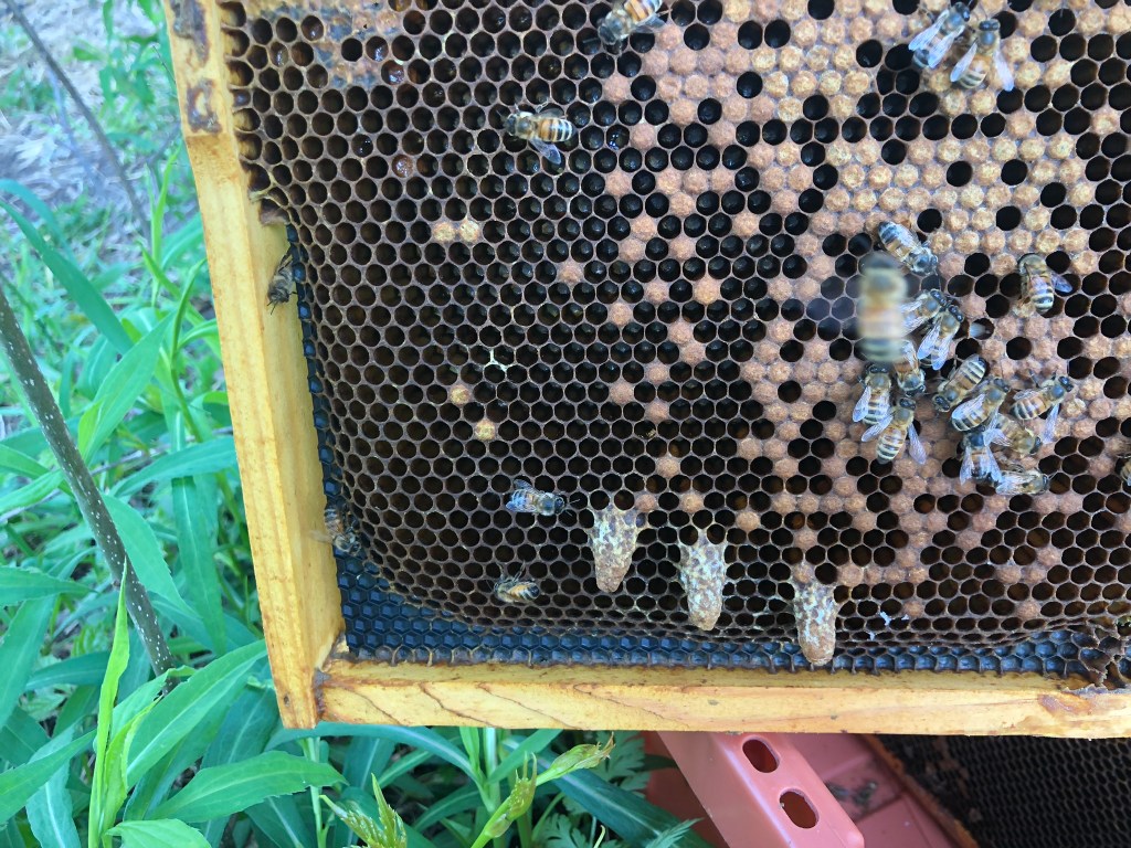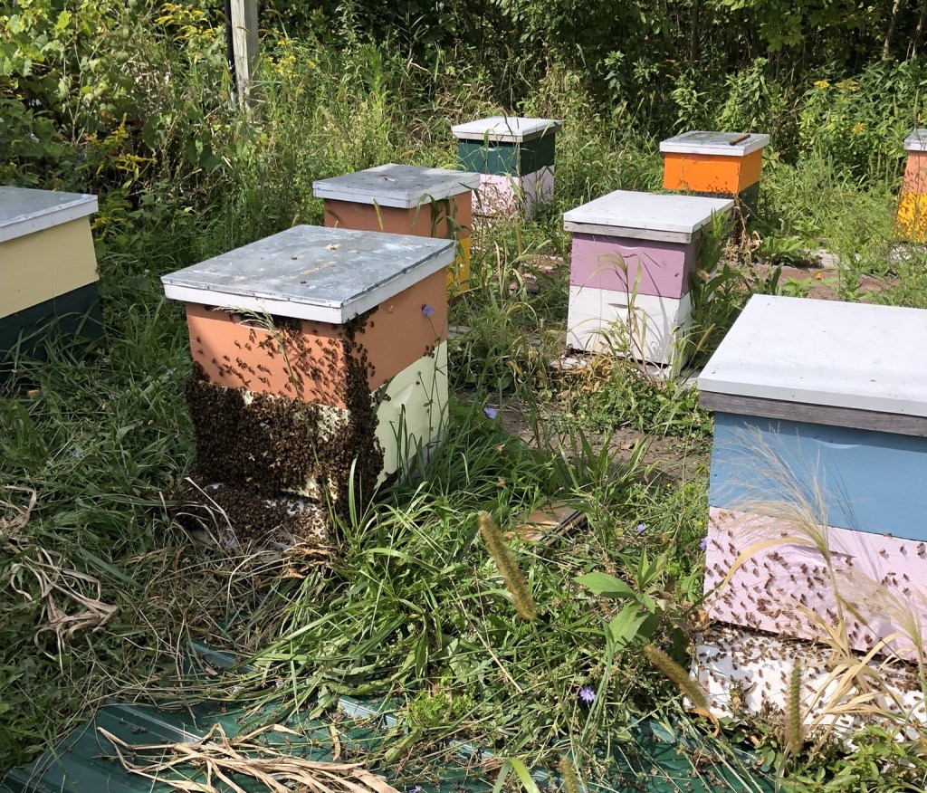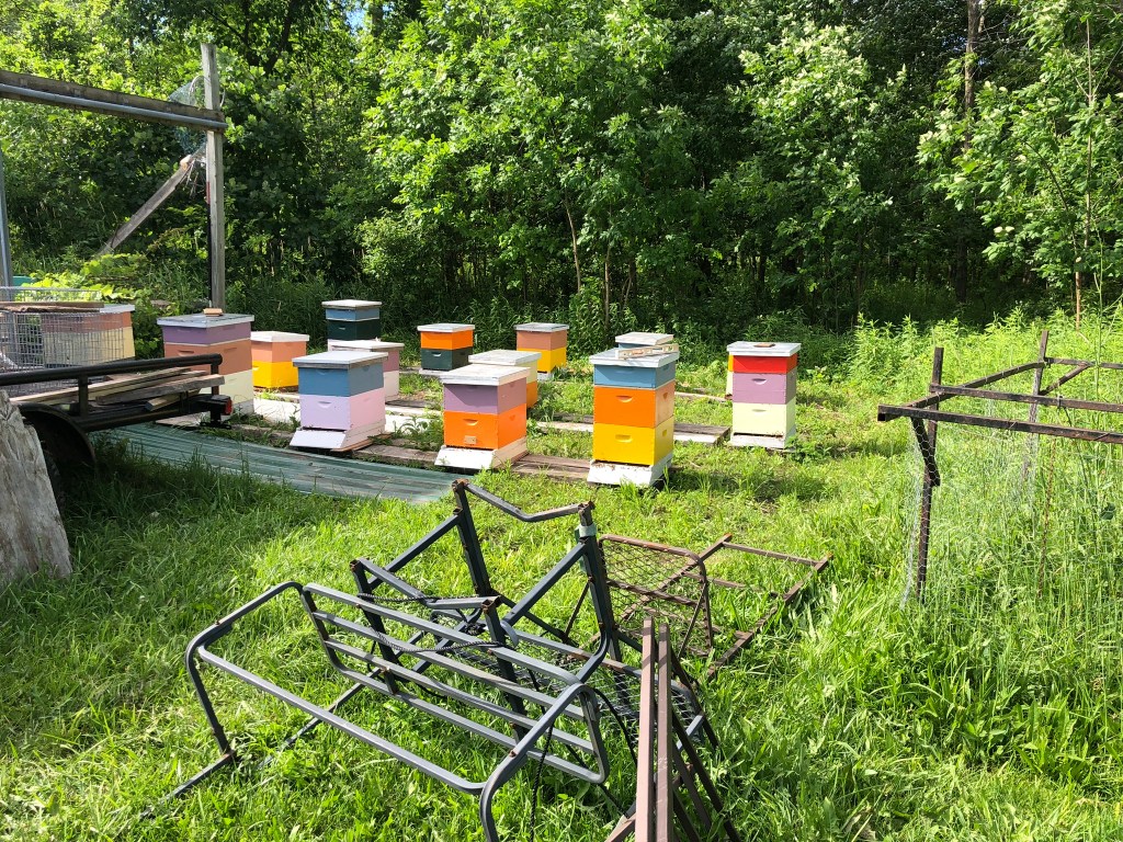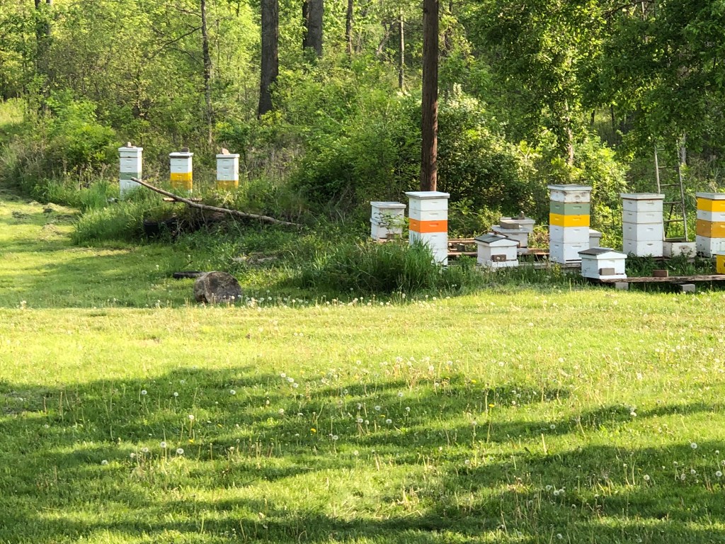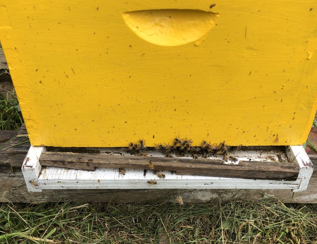 This is a photo of my hives being treated two years ago with formic pro, the vapors even kills the grass in front of the hive.