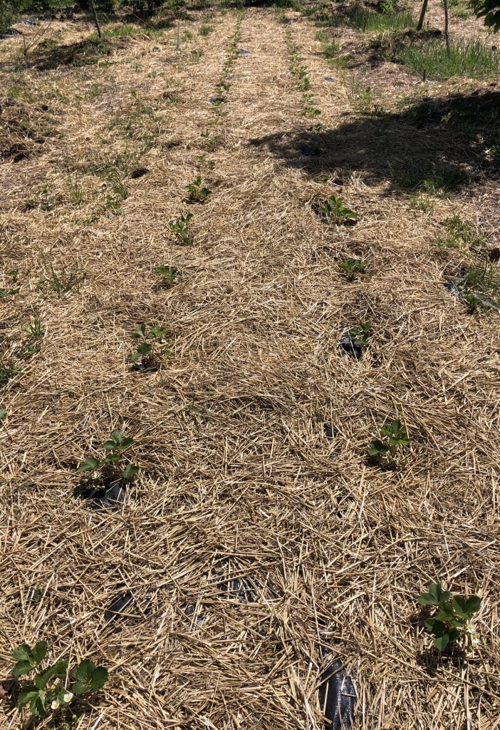 11/2025 Covered all the strawberry rows with 3/4 inches of straw.