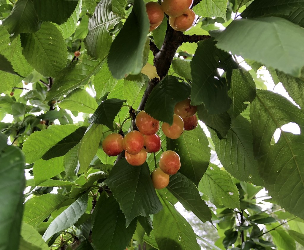 Cherry trees are giving me some fruit. They are hard to prune, they want to do their own thing.