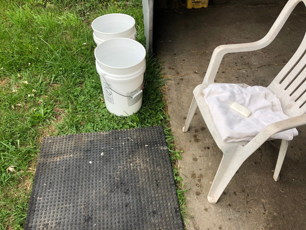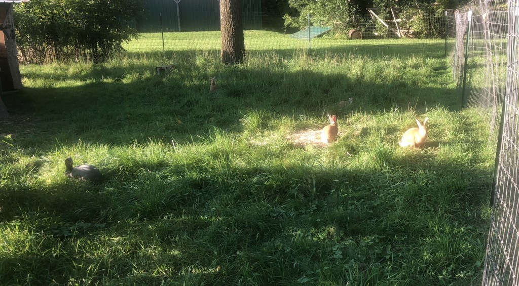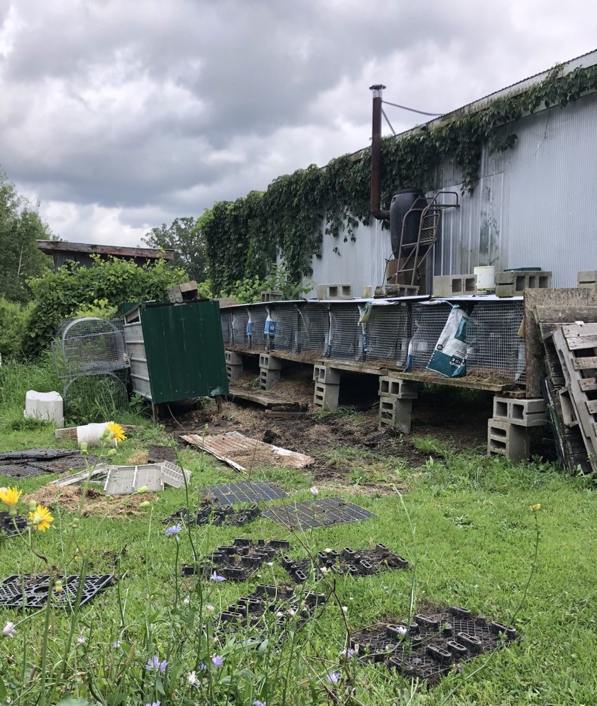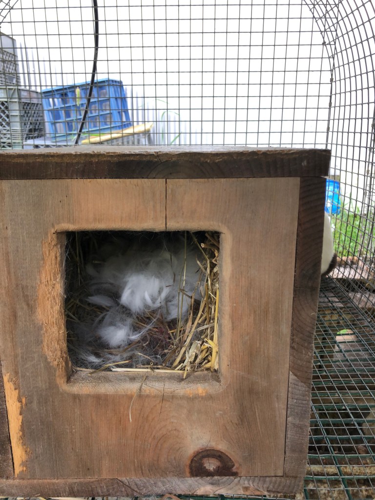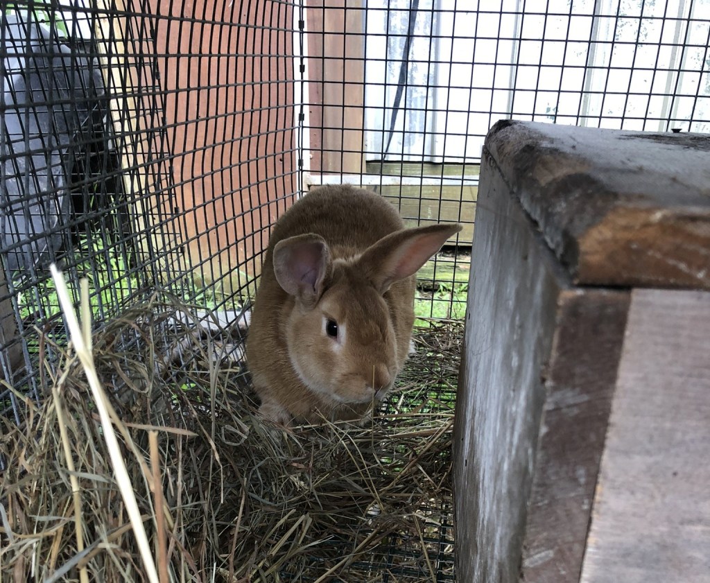 7/31 Adding feeders to rabbit cages. Right now the chickens can go 2-3 weeks without adding food and water. I am trying to make the rabbits good for a week. I hope to travel more and make it easy for people to take care of the animals when I am gone.