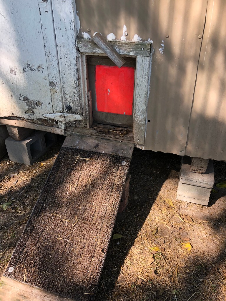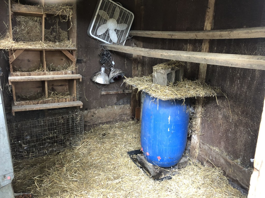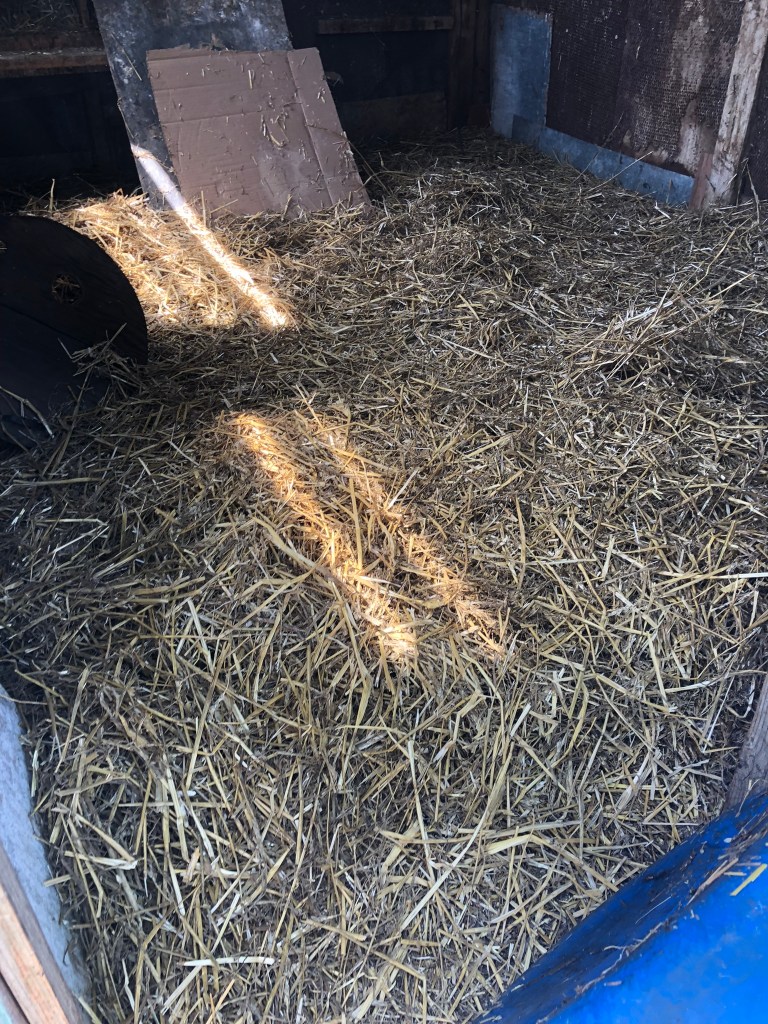 1/21 New straw in the coop. Corn Flakes is in a bad way, he isn’t suffering, but barely moves around and sleeps on the coop floor instead of roosting.