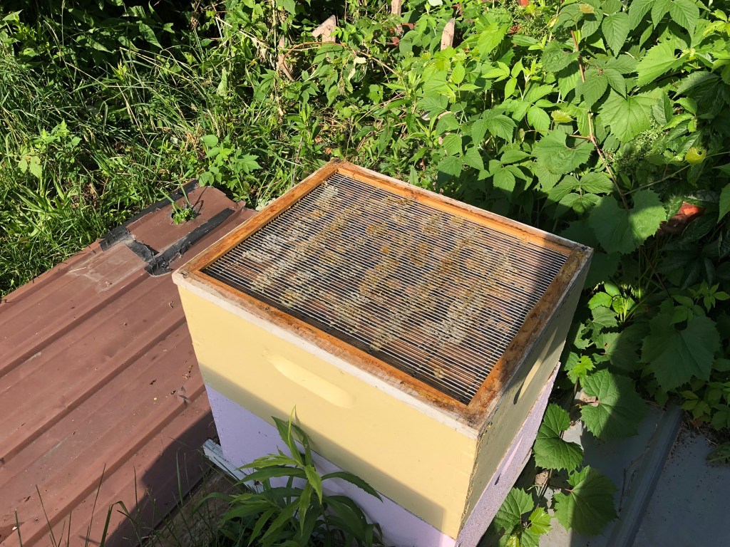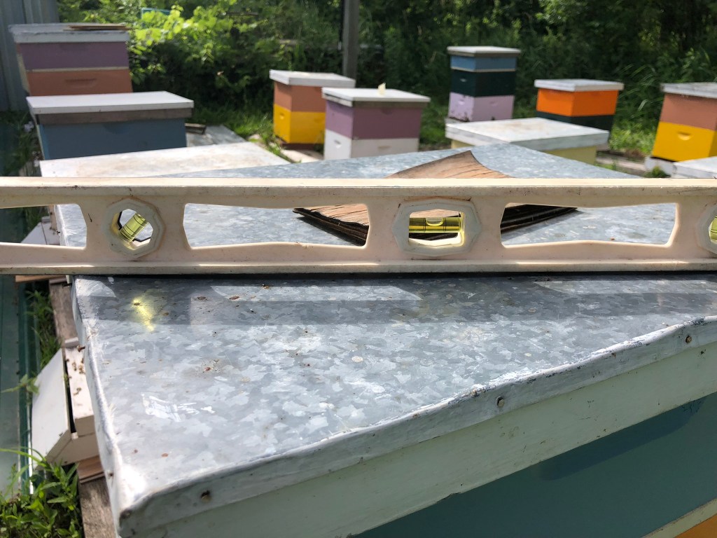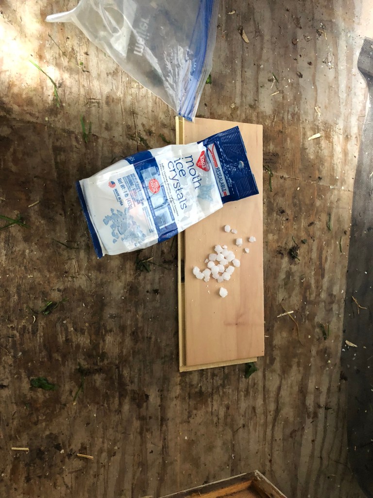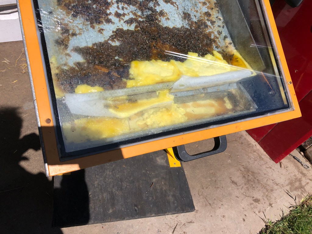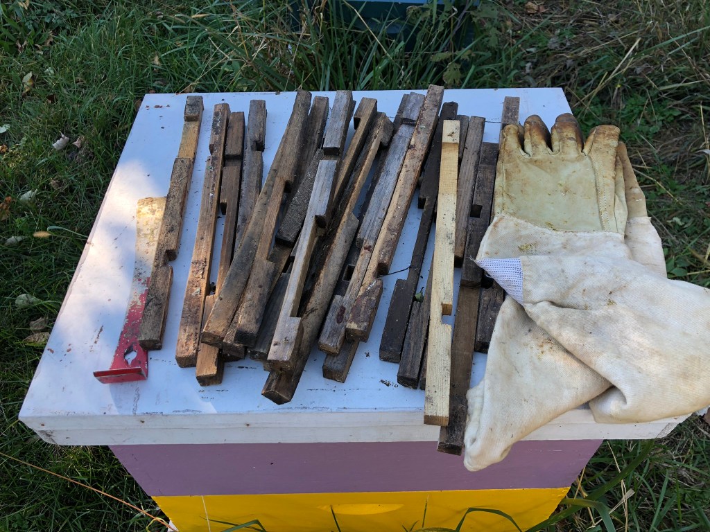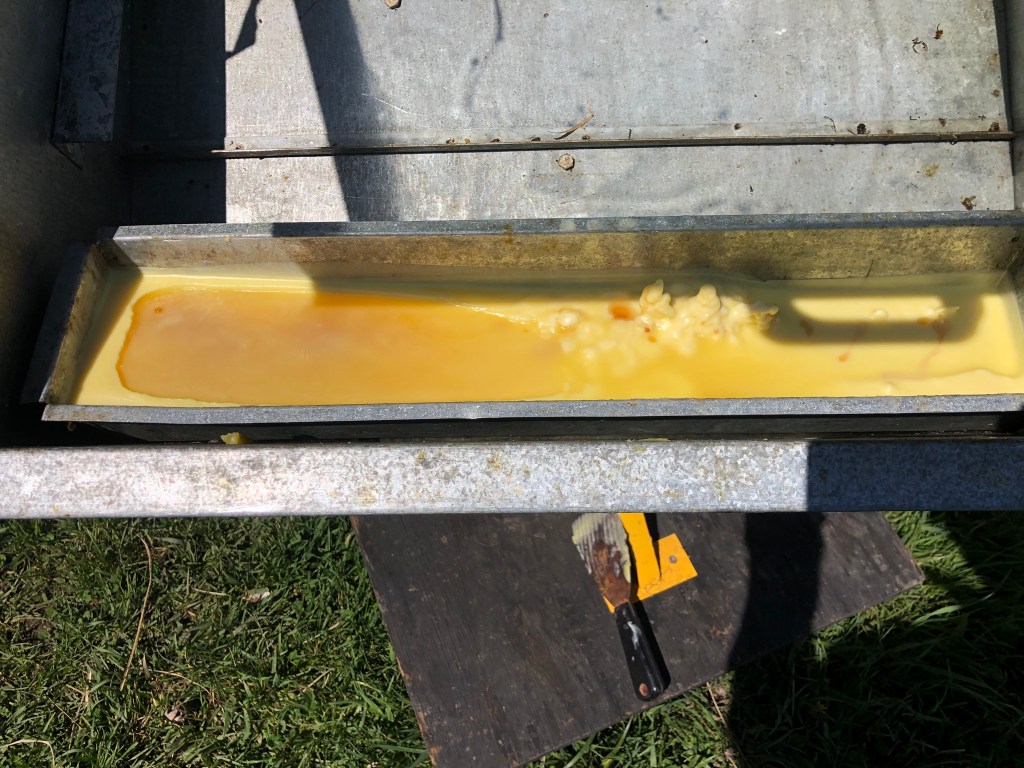 8/9 Taking all the honey supers off the hives the second week of August and giving the bees this mite treatment. This is the single most important thing to do make sure the hives will make it over the winter till spring. The mite count needs to be as low as possible BEFORE the winter bees are even eggs. This is like chemo to the hive for two weeks.