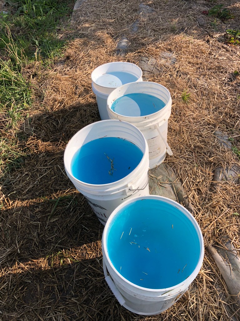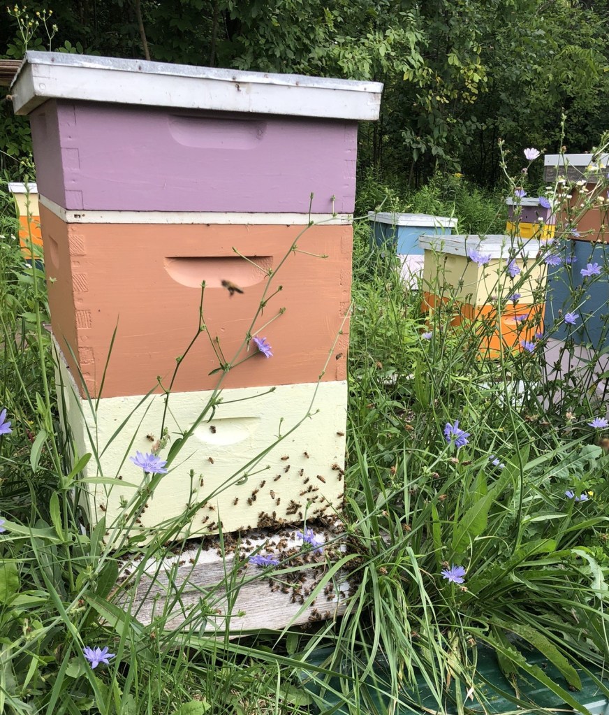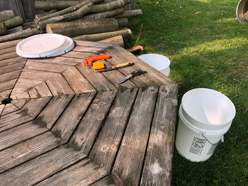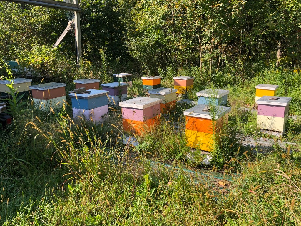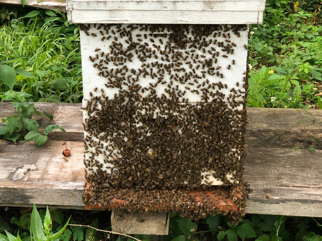 8/9 Taking all the honey supers off the hives the second week of August and giving the bees this mite treatment. This is the single most important thing to do make sure the hives will make it over the winter till spring. The mite count needs to be as low as possible BEFORE the winter bees are even eggs. This is like chemo to the hive for two weeks.
