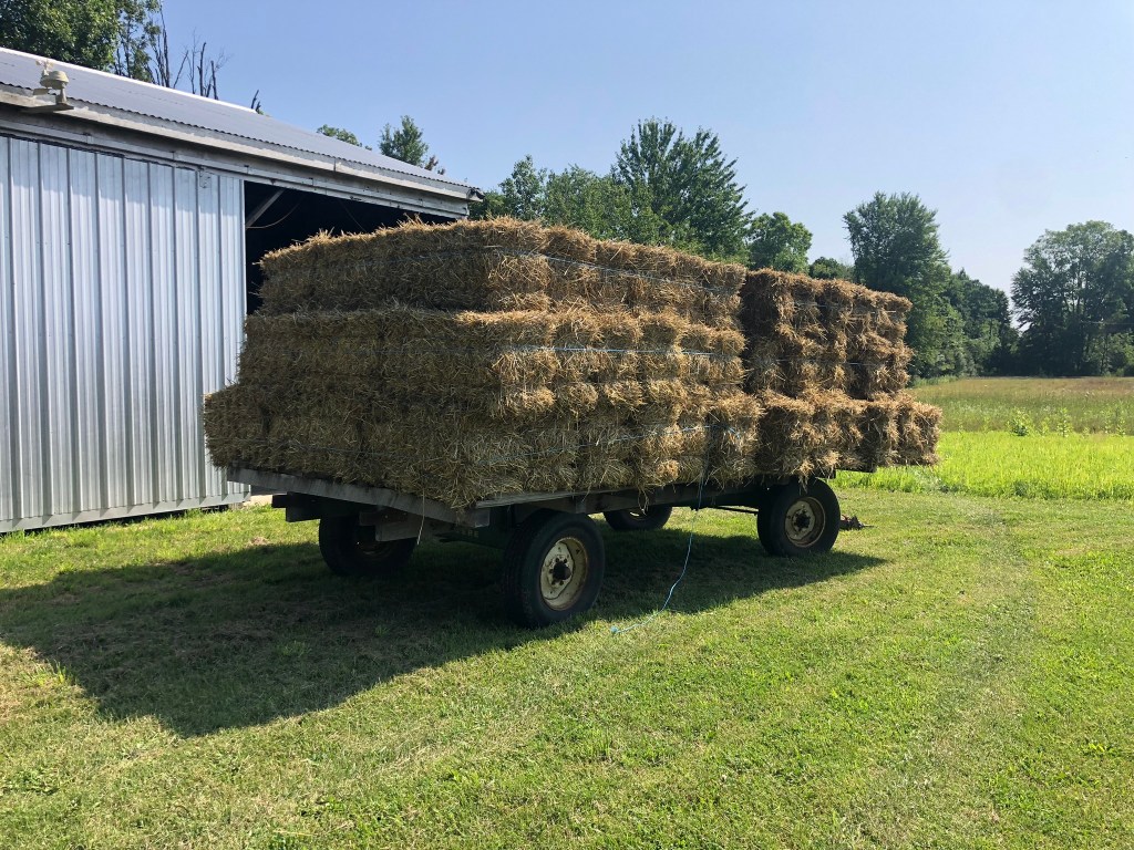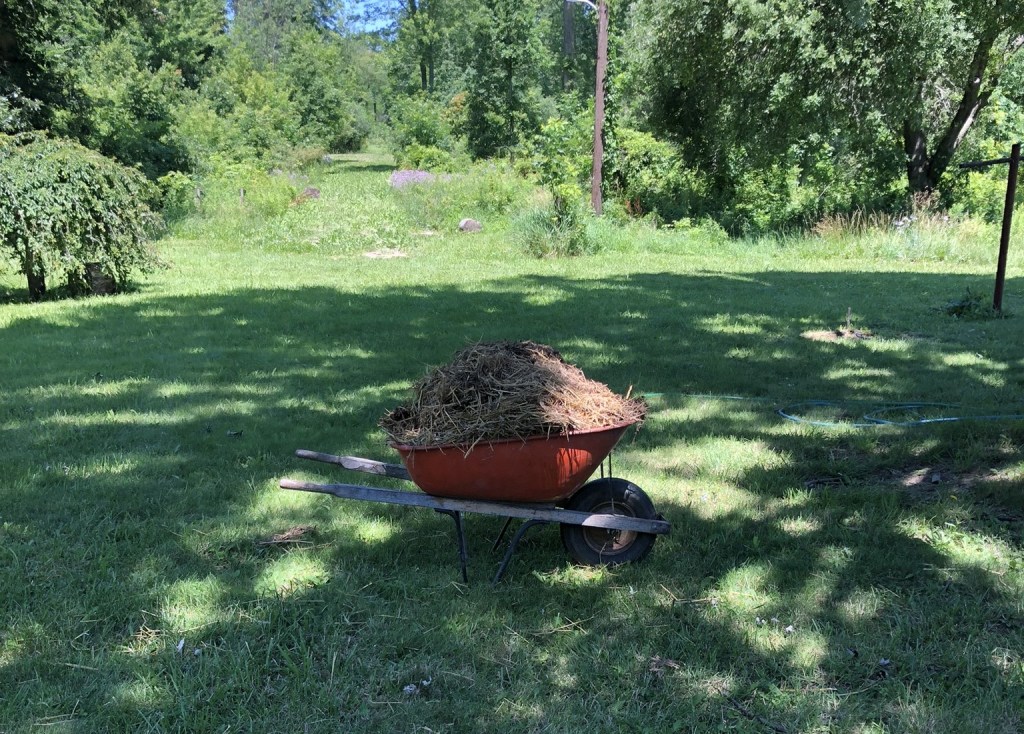 I get about 100 bales of straw every three years. It is used all over – chickens, rabbits, bees and the orchard.