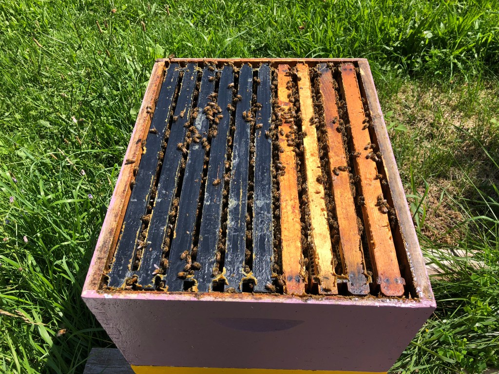 Had to switch boxes on all the bee hives. The queen is in the top box now and they want to work up. I open the hive, make sure the queen is in the top box, set the box on spare a bottom board. The I take the bottom box off, clean or replace the bottom board and reverse the hive. Some hives I put supers on. They all looked strong and the queens were large.