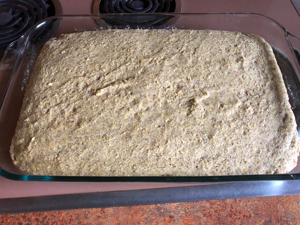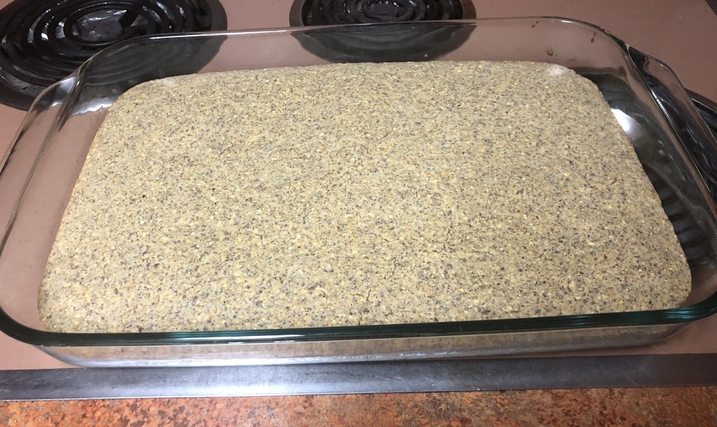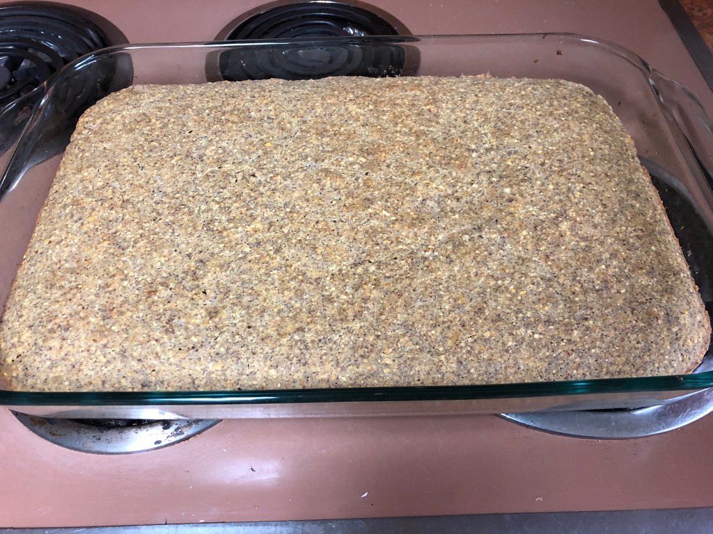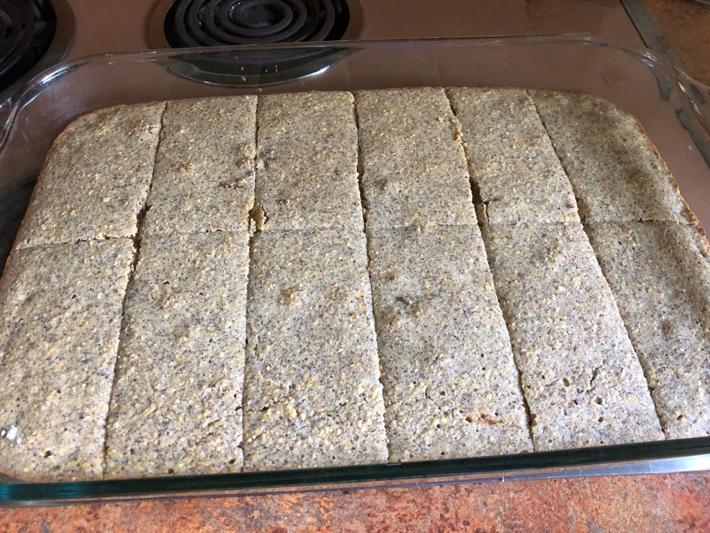 12/21 My homemade cornbread using water not milk, aluminum free baking powder, an extra egg (that have extra omega 3 in them) and 2 cups of flax seed for omega -3. I have to freeze it because it has no preservatives. All bread from the store is ultra processed food.