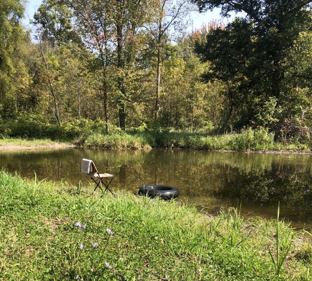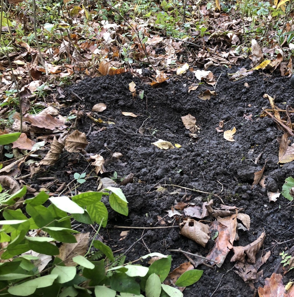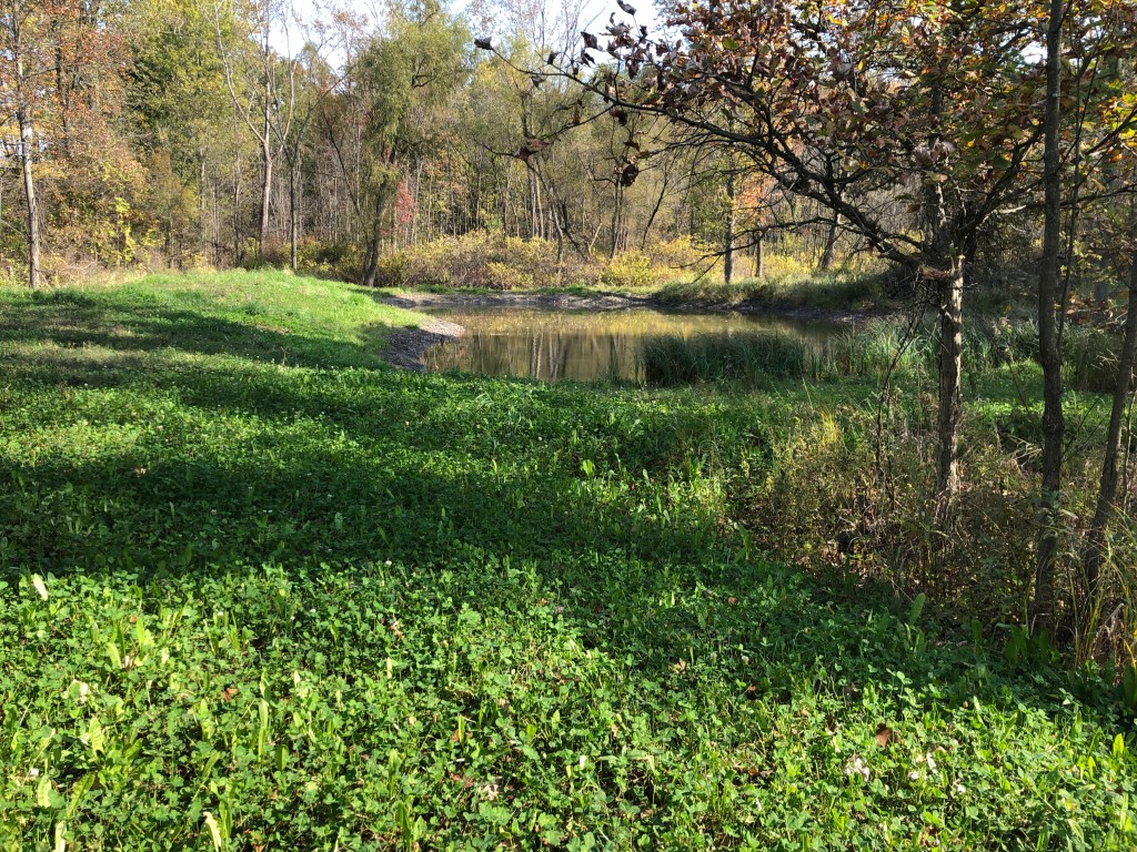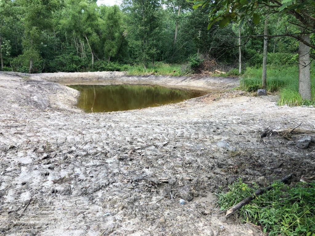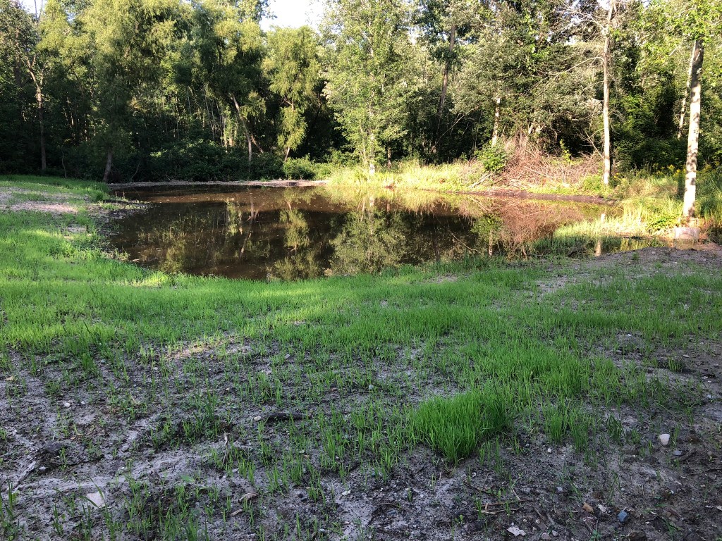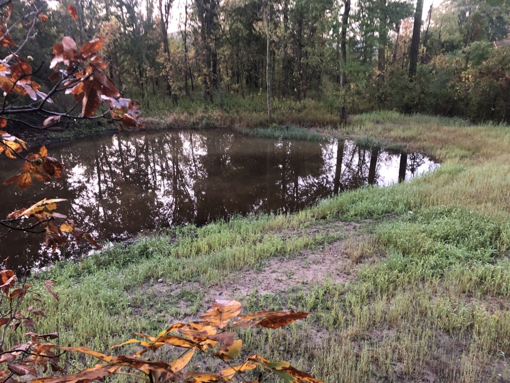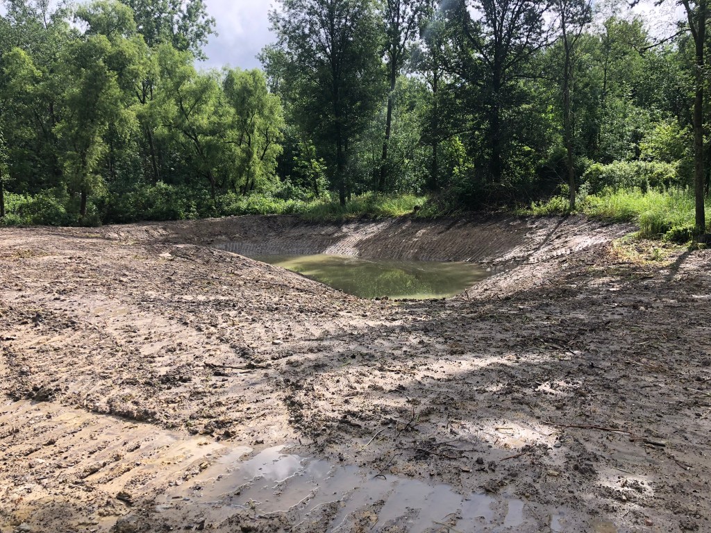 I had this pond made in the woods, it will be a good size when it fills. The water right now is over my head. Small but deep in two spots. I am looking forward to many cups of coffee watching wildlife visit.