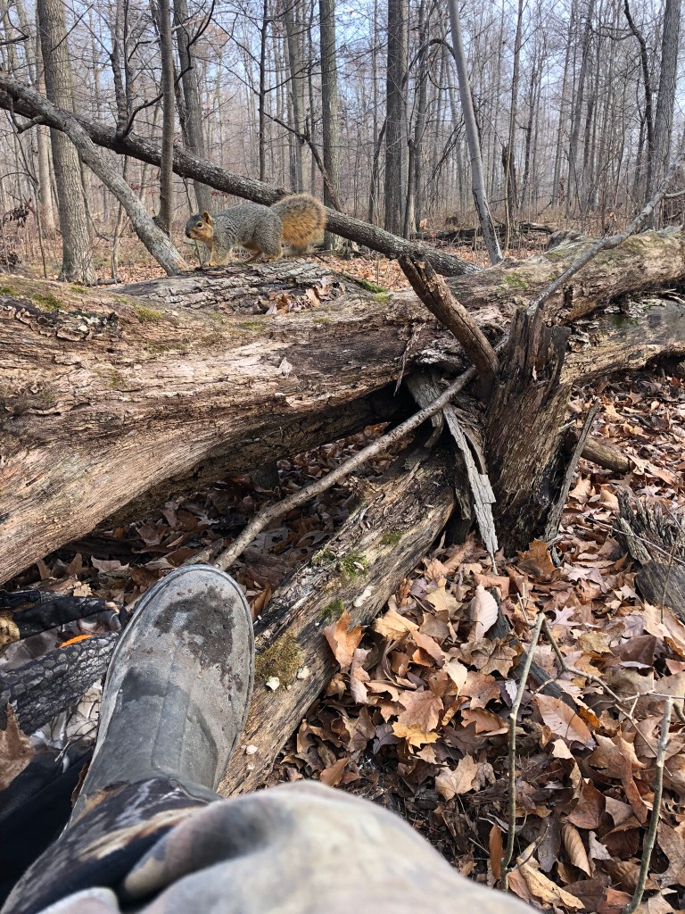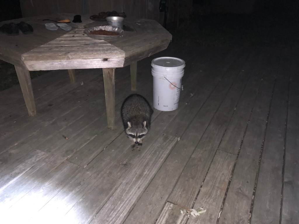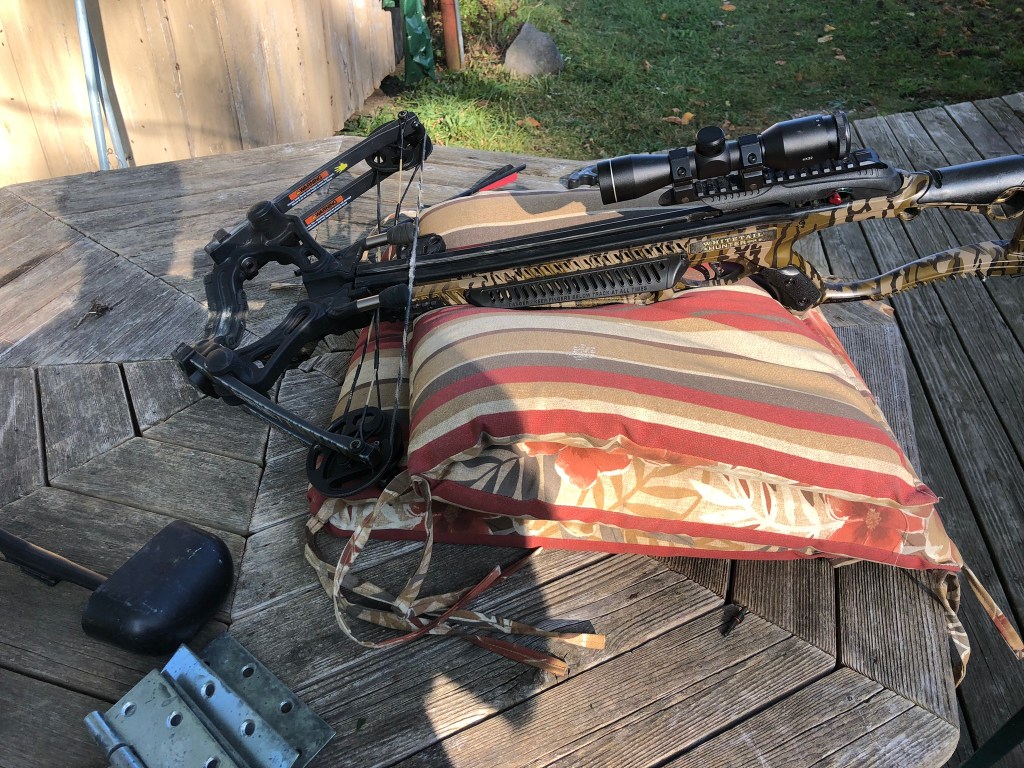 11/6 All hunting gear is kept outside on the picnic table when I am not hunting, to keep house/human smells away.