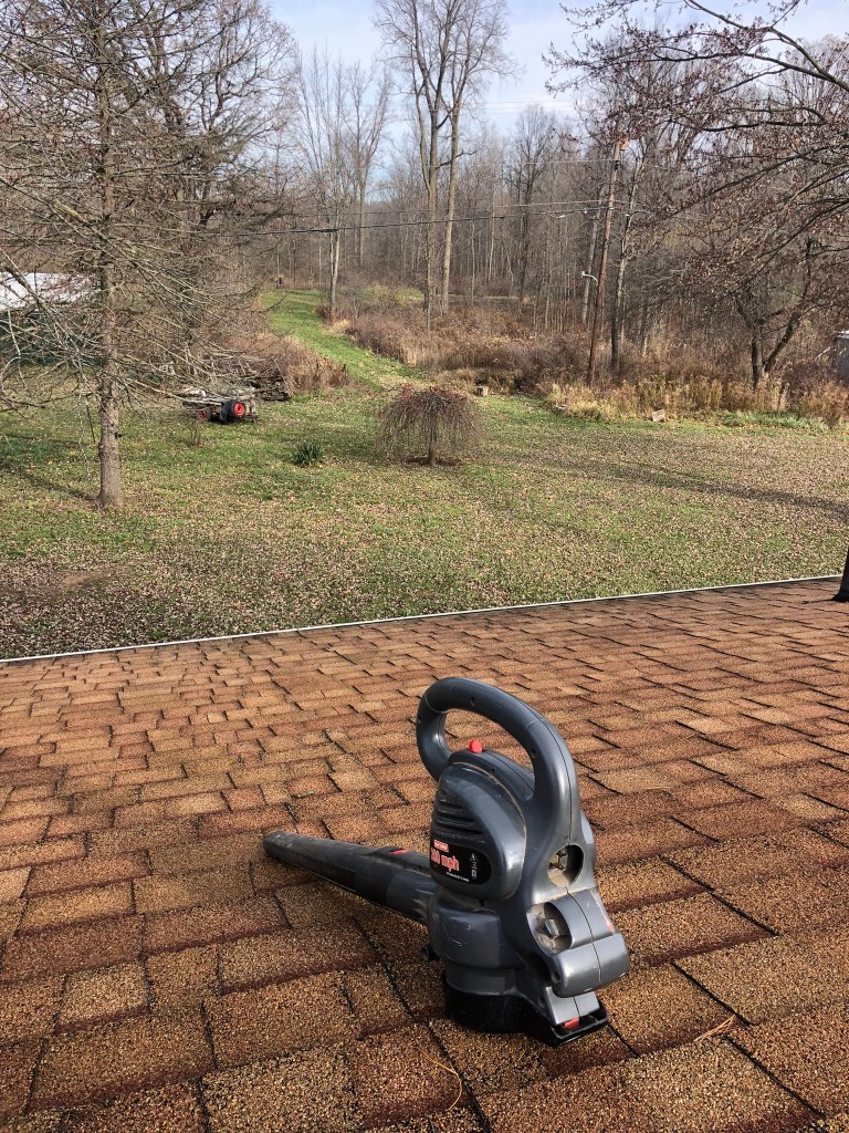 11/5 Cleaned the gutters of leaves with a leaf blower. It does a good job and prevents many problems.