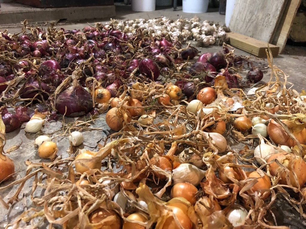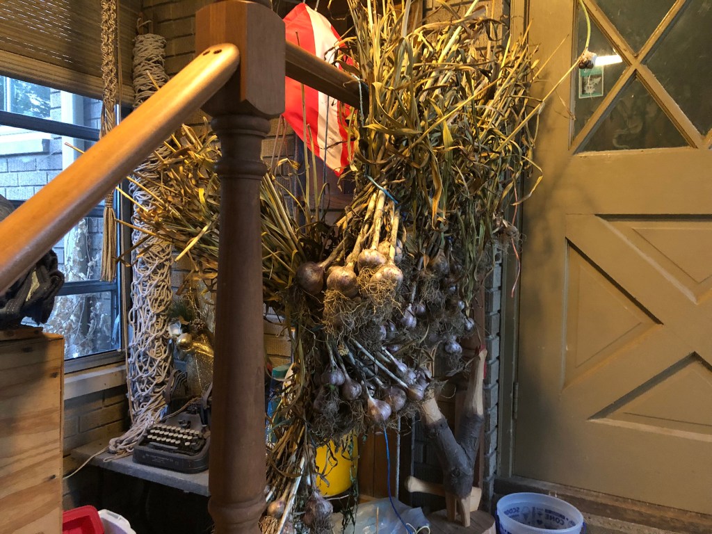 7/27 The garlic is hanging in the breezeway. I can smell it every time I go in and out.