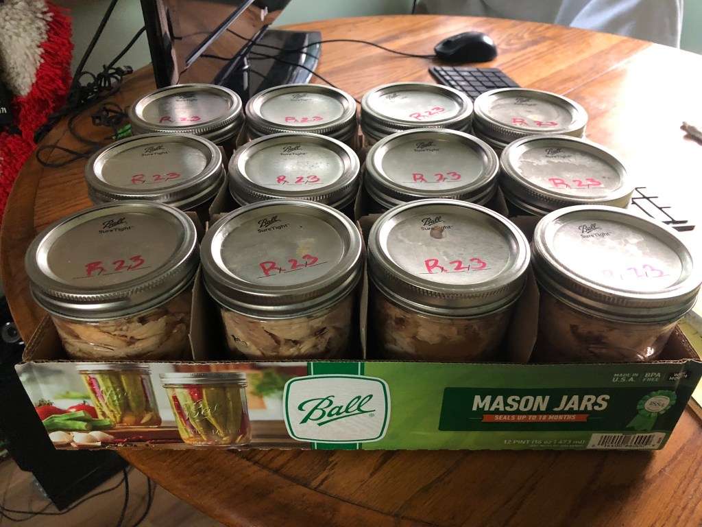 Home canned rabbit and chicken. It is better than any food that can be purchased in a store.