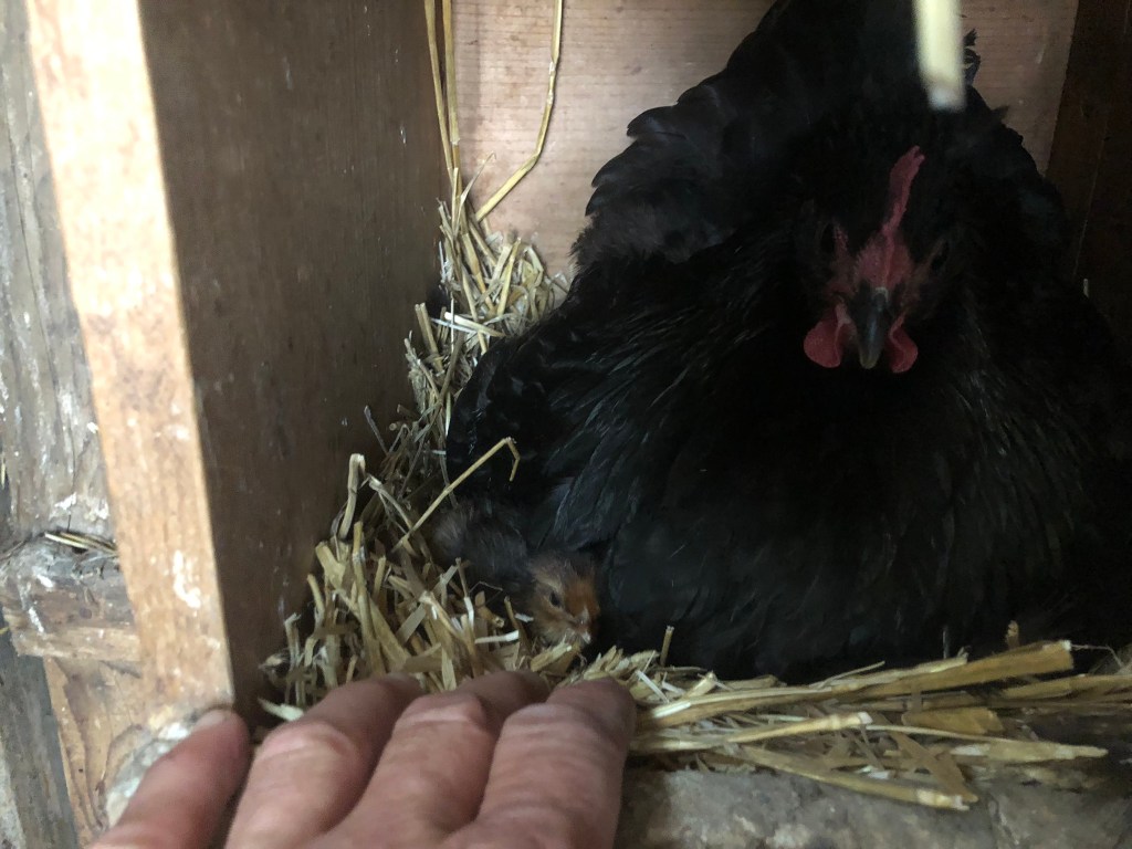 This hen hatches chicks every year. She starts sitting on eggs around May 15.