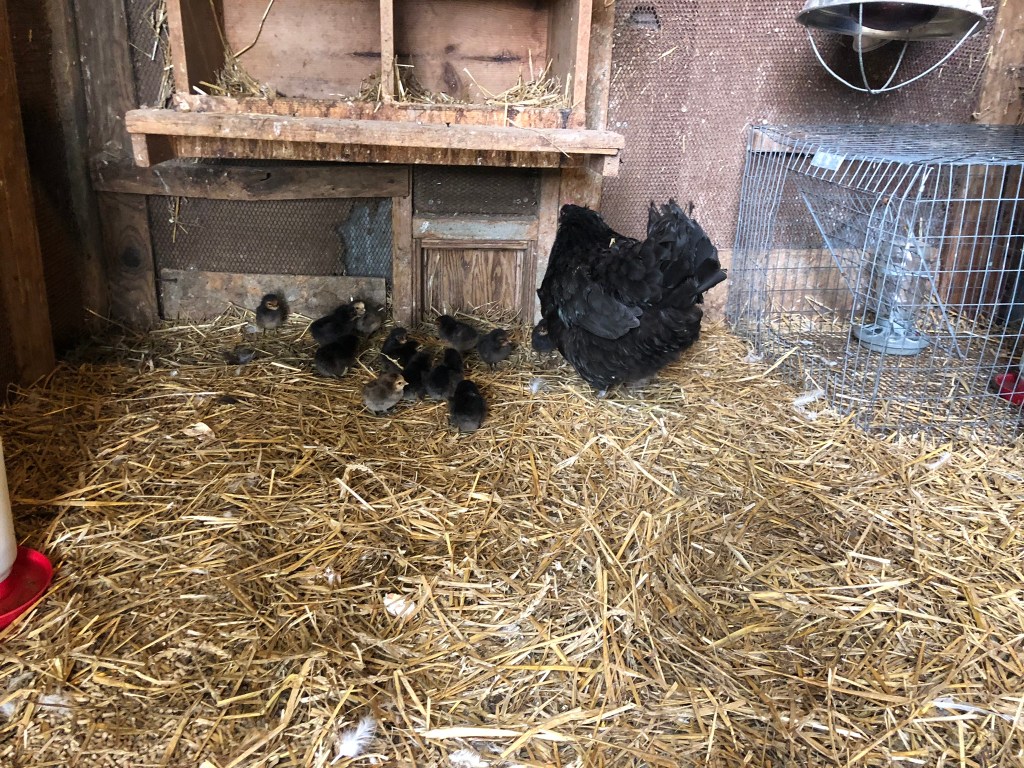 I only have 3 adult chickens, two hens that are proven mothers and a rooster.