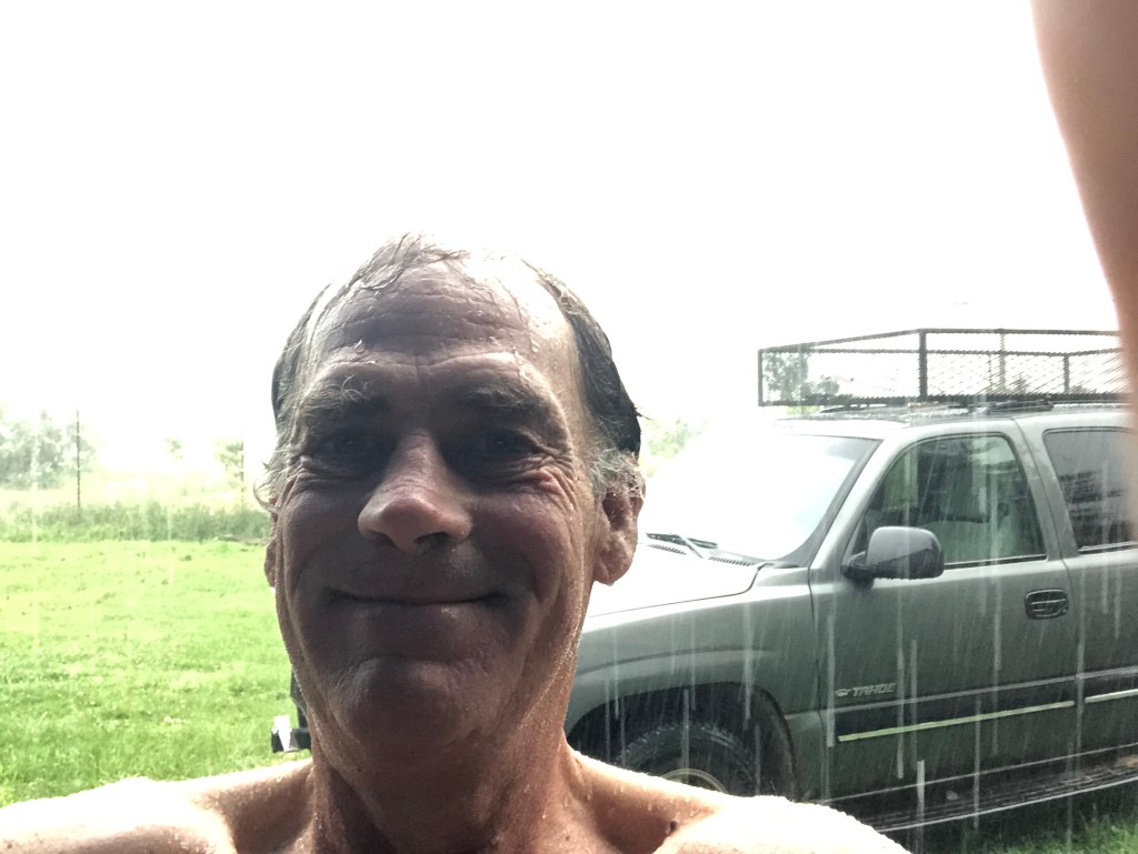 I like to take a shower under the barn roof during summer thunderstorms. The water is so soft.