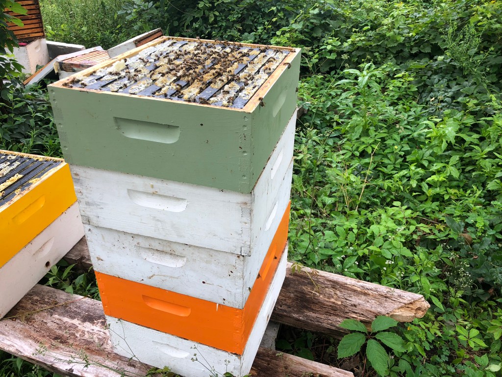 8/9 I took five full supers of honey from 1 hive! 60-80 percent of all my honey will come from just a few hives. Each box weighs about 60 pounds.