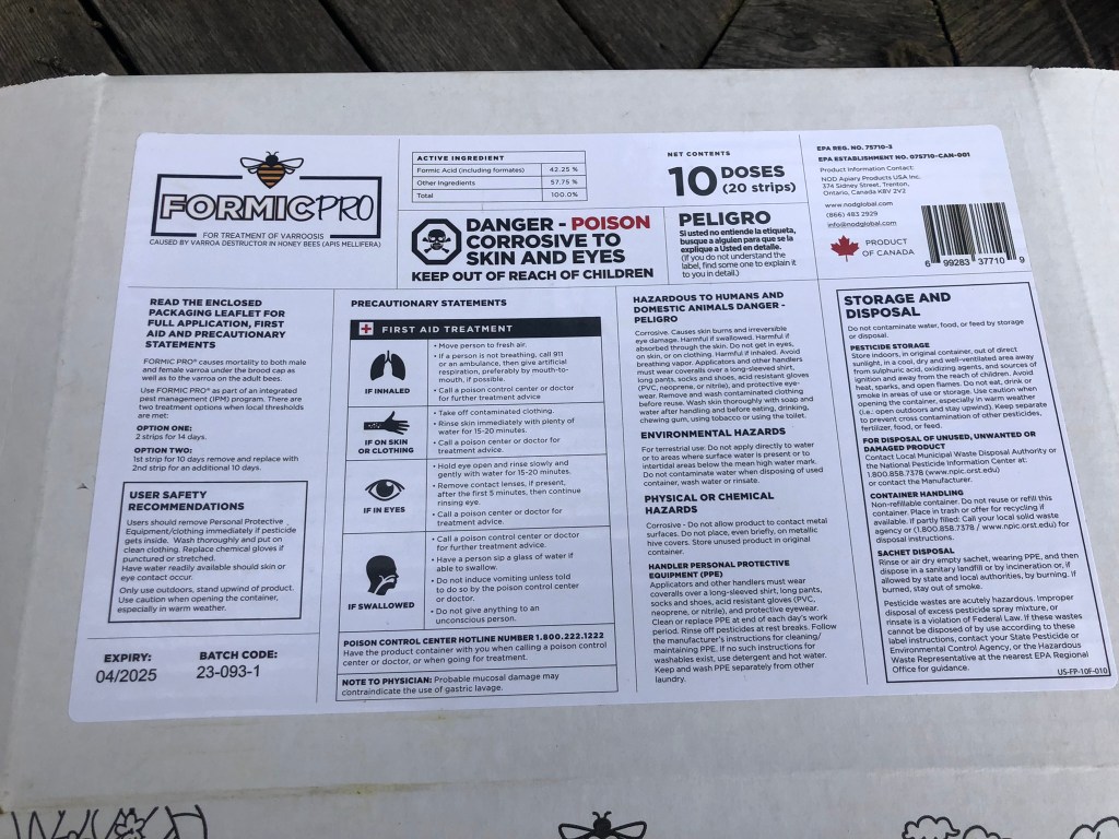 12/26 Without using formic pro there will be hive loses of 30 to 80+ %.