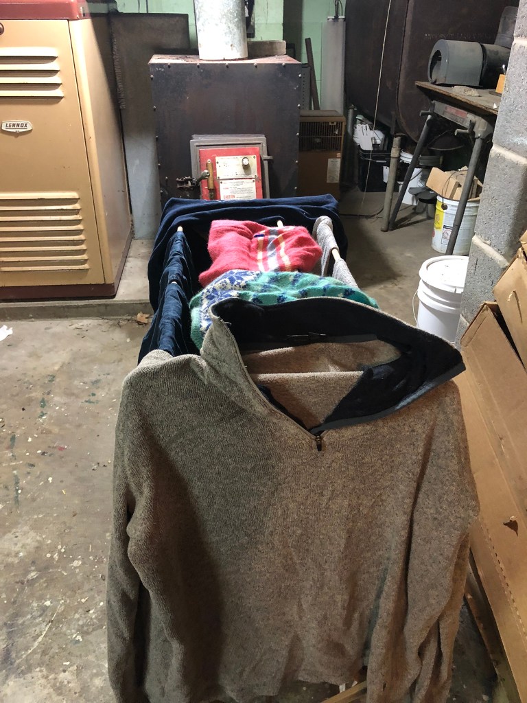 11/2025 When the wood stove is running, I dry clothes, in the wood room, on a rack. I will put them in the dryer for a minute to take the wrinkles out.
