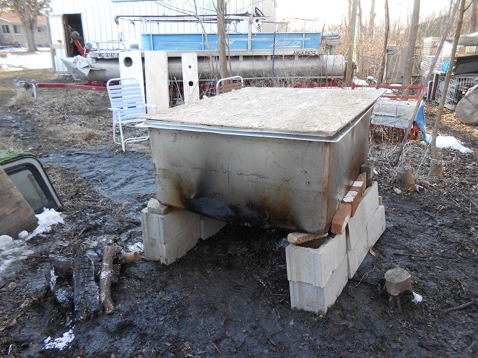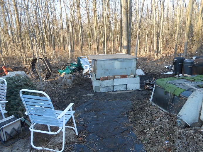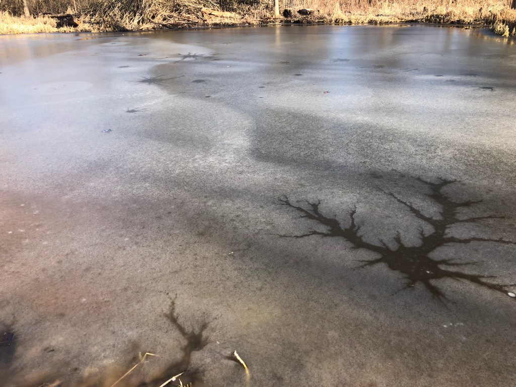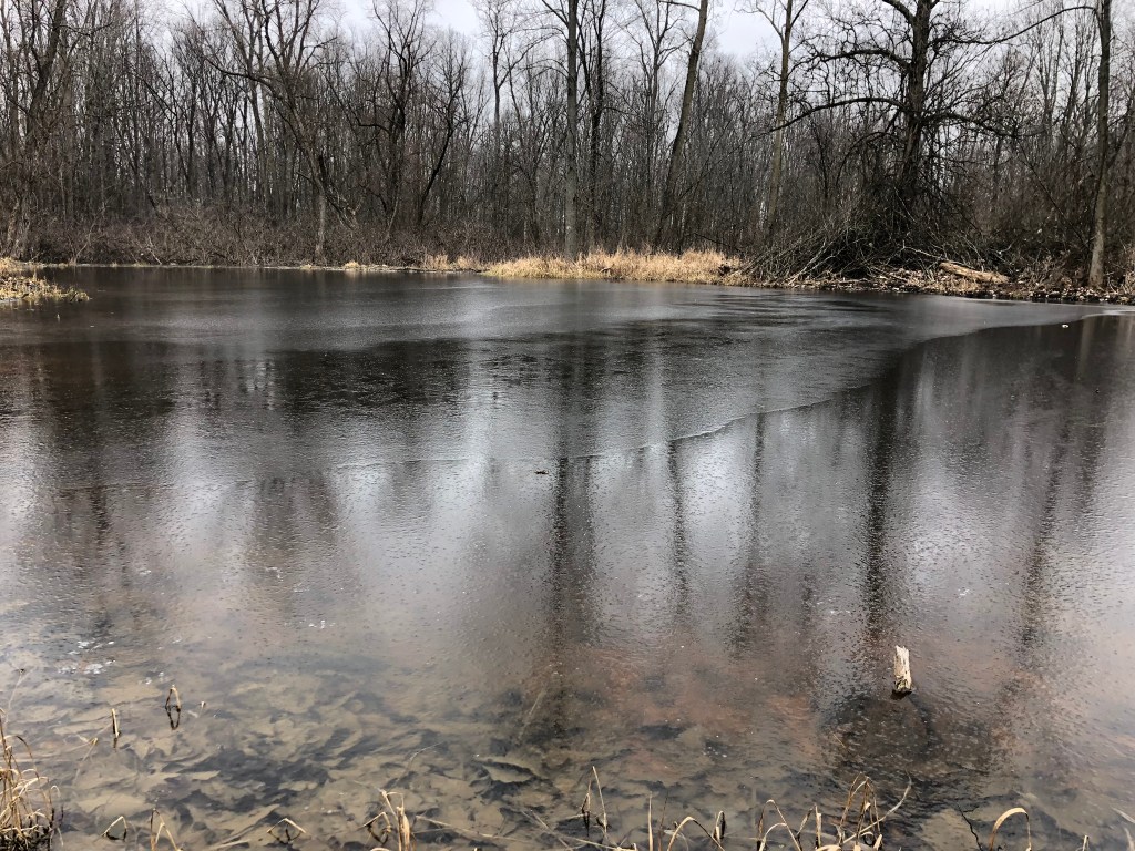 1/21 I drilled some holes in the pond to put air in the water for the fish. Lack of oxygen in the winter and snapping turtles are my biggest problems keeping fish.