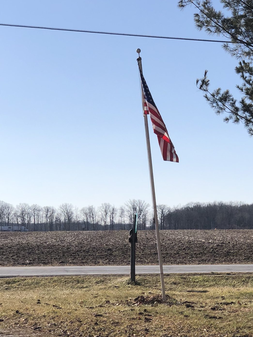 12/29 A strong winter wind knocked out a large limb from the pine tree. It fell on the flag pole.