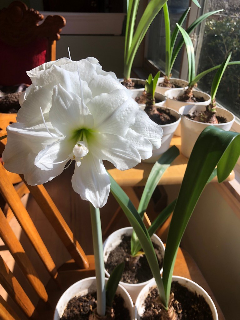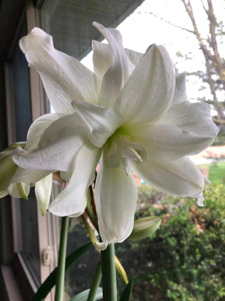 7/27 My amaryllis is flowering, I love amaryllis flowers in the winter.
