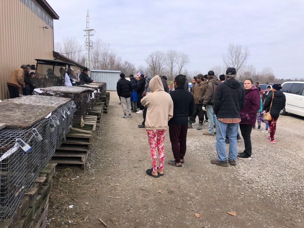 1/3 I sold 12 dozen eggs at the auction. My eggs are in the brown box with the flaps open, one of the smallest groups.