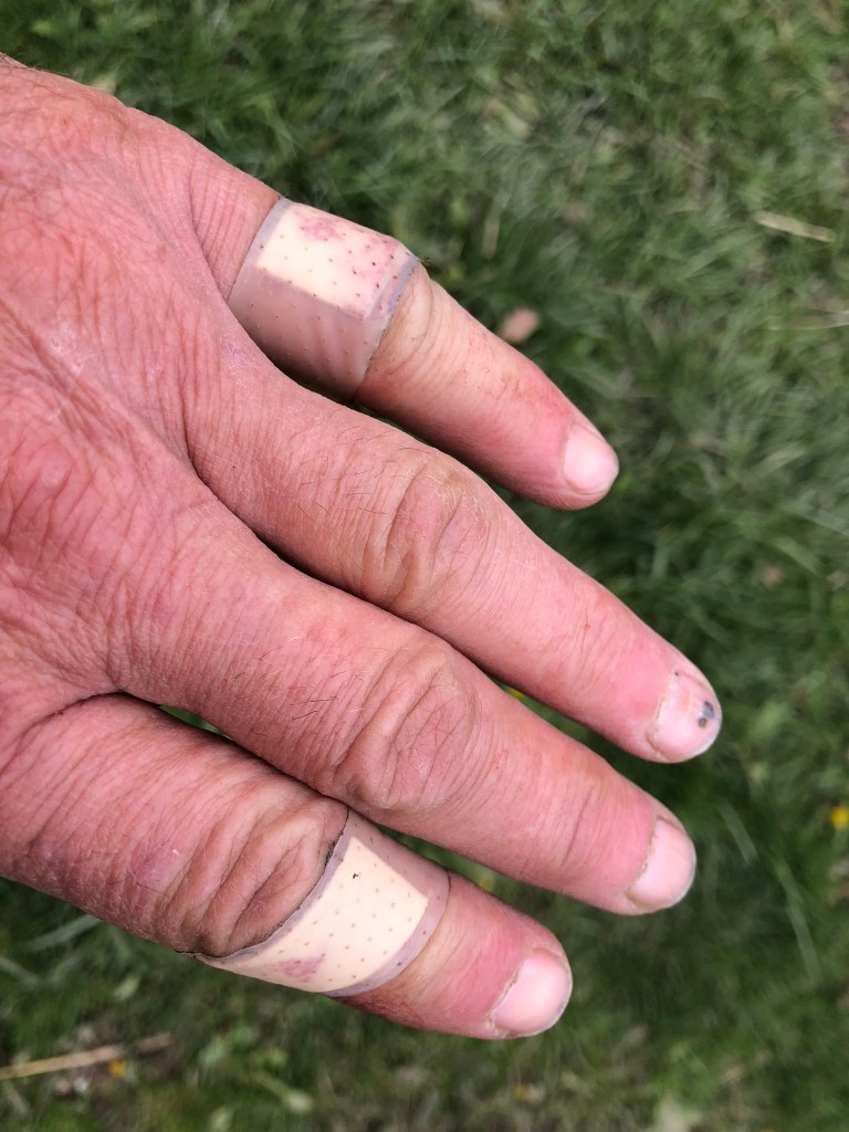 I am in the front, there is duct tape on my knuckle from a rough spill earlier.
