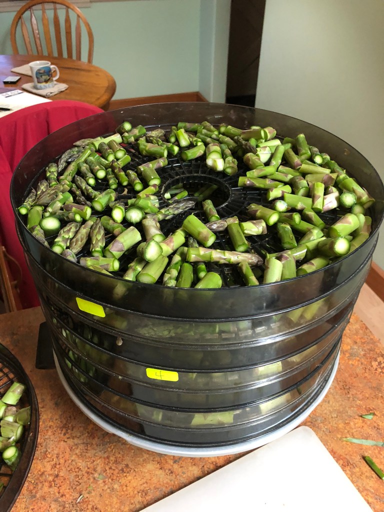 I get this amount of asparagus every other day. I am dehydrating most of it.
