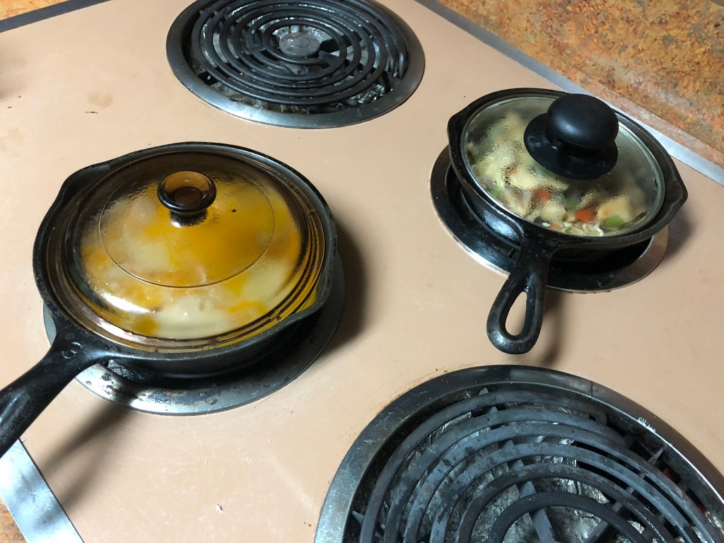 1/13 I completely cleaned all my cast iron pans and seasoned them at 400 for an hour. Only cast iron should be used for cooking, all other pans are unsafe.