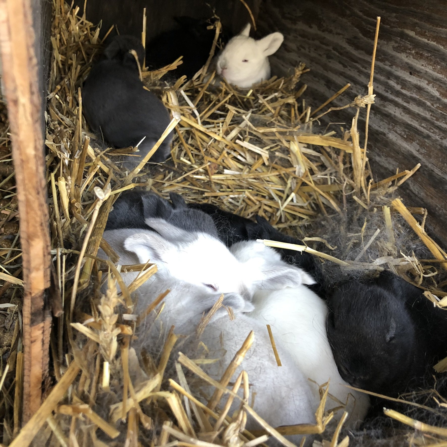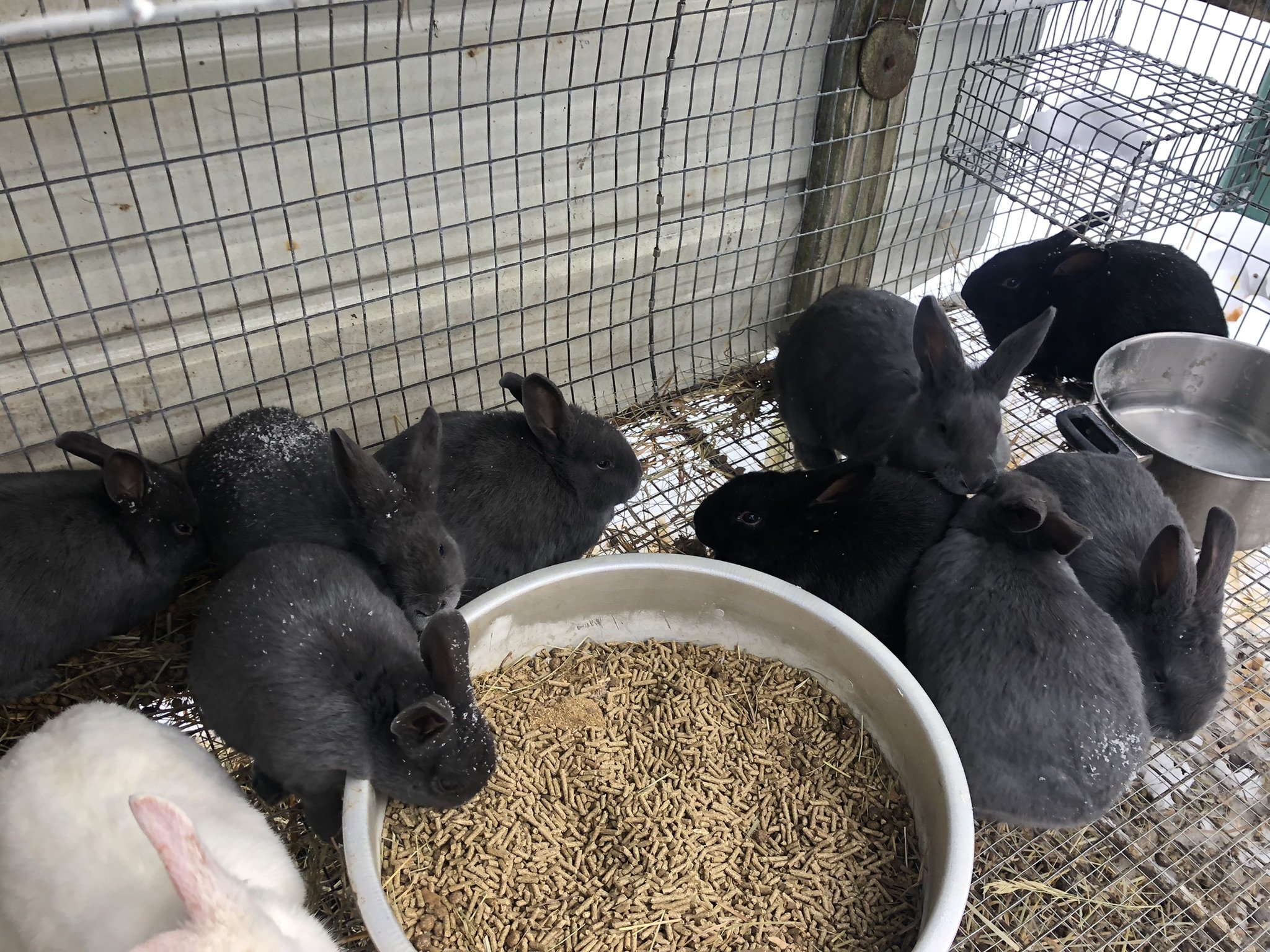 I raise rabbits and currently have 3 does and 2 bucks. They are Rex mix and Palomino breeds. Rabbit counts can go up to 35 at times.