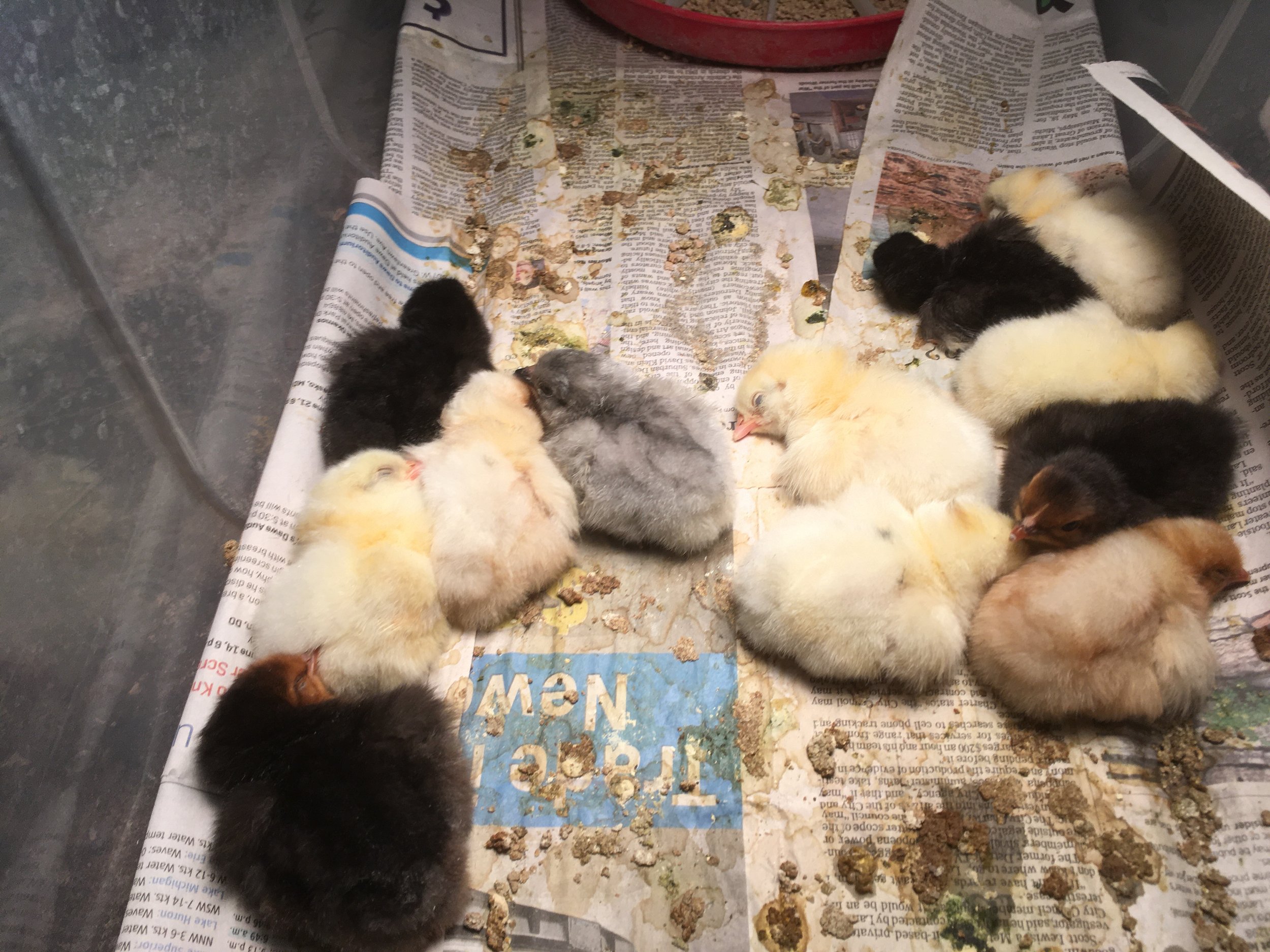 3/8 The chicks have been moved into the coop. It is very cold out for them, but it has to be done.