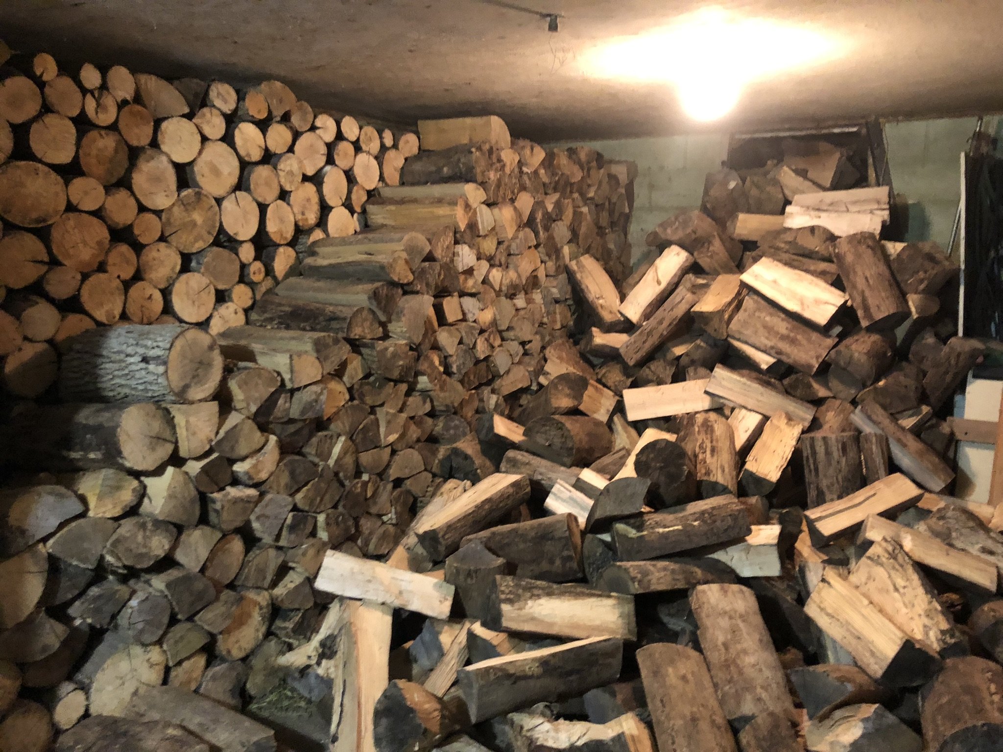 2/27 Taking advantage of a warm, dry day to throw wood in the basement.